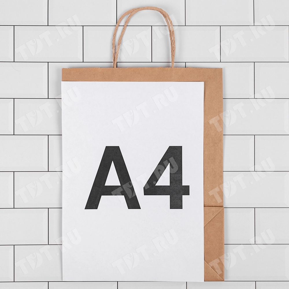 Бумажный крафт-пакет с кручёной ручкой шириной 110 мм, длиной 240 мм, высотой 320 мм, изготовлен из экологичного материала. Пакеты производятся в России.