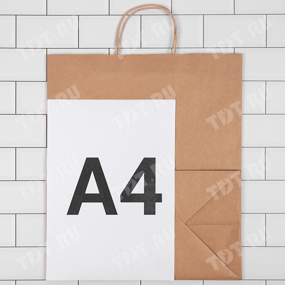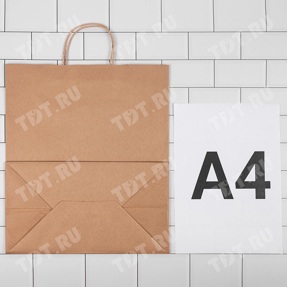Крафт пакет с крученой ручкой, 80 г/м², 32*18*37 см