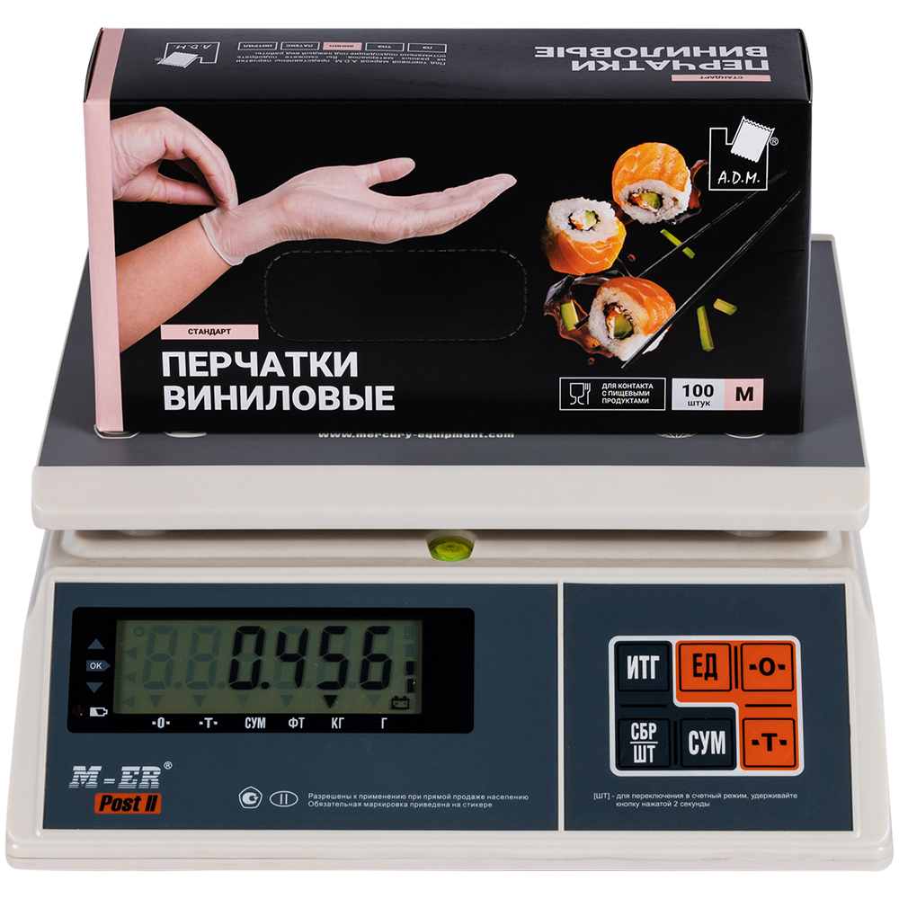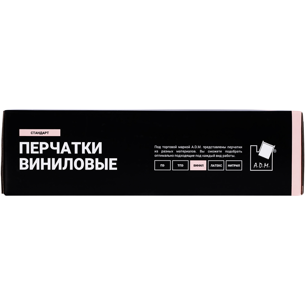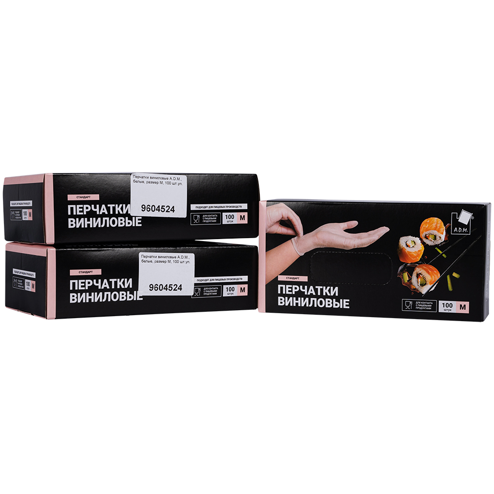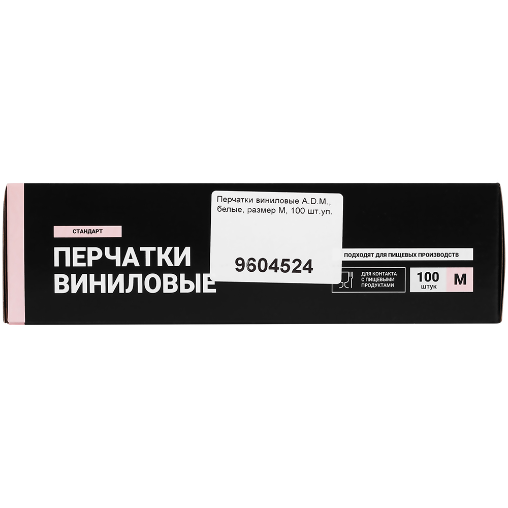 Перчатки виниловые A.D.M., белые, размер M, 100 шт./уп.