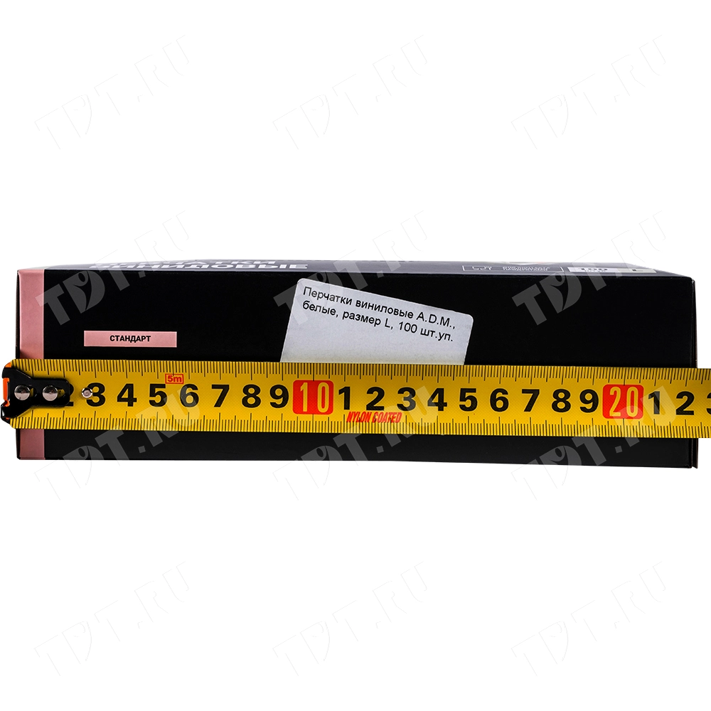 Перчатки виниловые A.D.M., белые, размер L, 100 шт./уп.