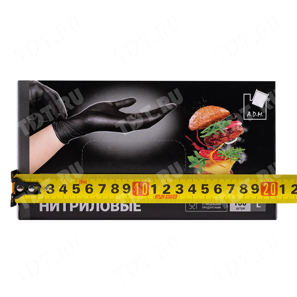 Перчатки нитриловые A.D.M., черные, размер L, 100 шт./уп.