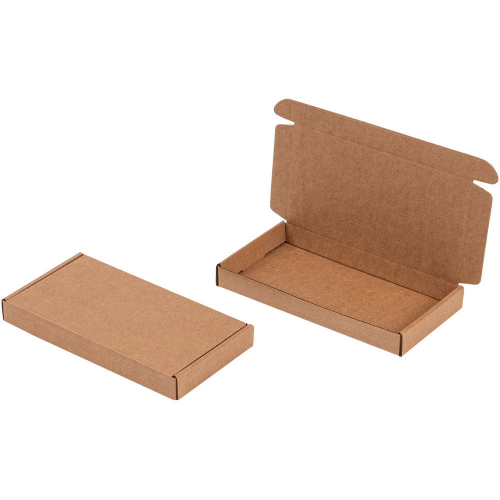 Коробка под чехол для телефона бурого цвета, длиной 180 мм, шириной 90 мм и высотой 20 мм.