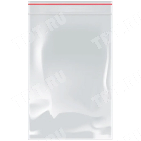 Пакеты Zip-Lock, прозрачного цвета с красной полосой, длиной 150 мм, шириной 100 мм, толщиной 55-65 мкм, в упаковке по 100 штук. Материал – полиэтилен высокого давления (ПВД). Производятся в Китае.