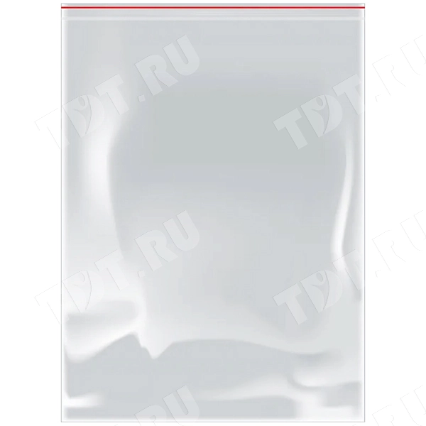 Пакеты Zip-Lock, прозрачного цвета с красной полосой, длиной 400 мм, шириной 300 мм, толщиной 70-80 мкм, в упаковке по 100 штук. Материал – полиэтилен высокого давления (ПВД). Производятся в Китае.