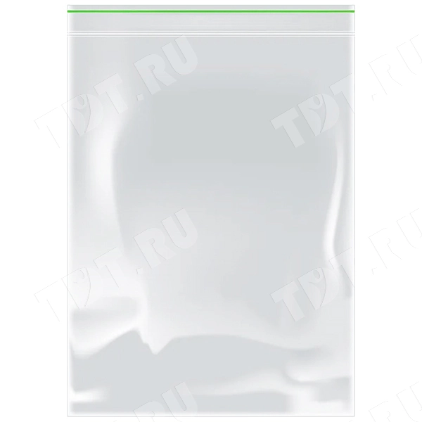 Пакеты Zip-Lock, прозрачного цвета с зеленой полосой, длиной 200 мм, шириной 150 мм, толщиной 23-26 мкм, в упаковке по 100 штук. Материал – полиэтилен высокого давления (ПВД). Производятся в Китае.
