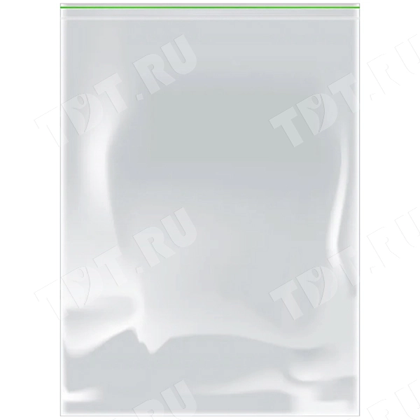 Пакеты Zip-Lock, прозрачного цвета с зеленой полосой, длиной 350 мм, шириной 250 мм, толщиной 23-26 мкм, в упаковке по 100 штук. Материал – полиэтилен высокого давления (ПВД). Производятся в Китае.