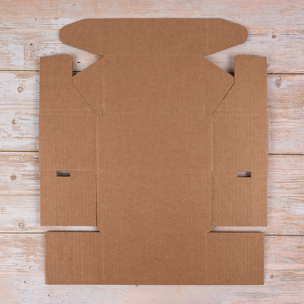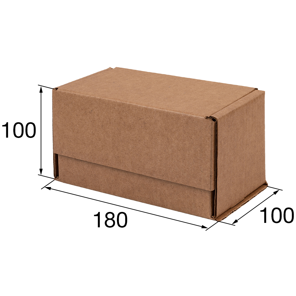 Коробка №162 бурого цвета, длиной 180 мм, шириной 100 мм и высотой 100 мм. Изготовлен из гофрокартона Т-23 В. Полезный объём — 1.8 л.