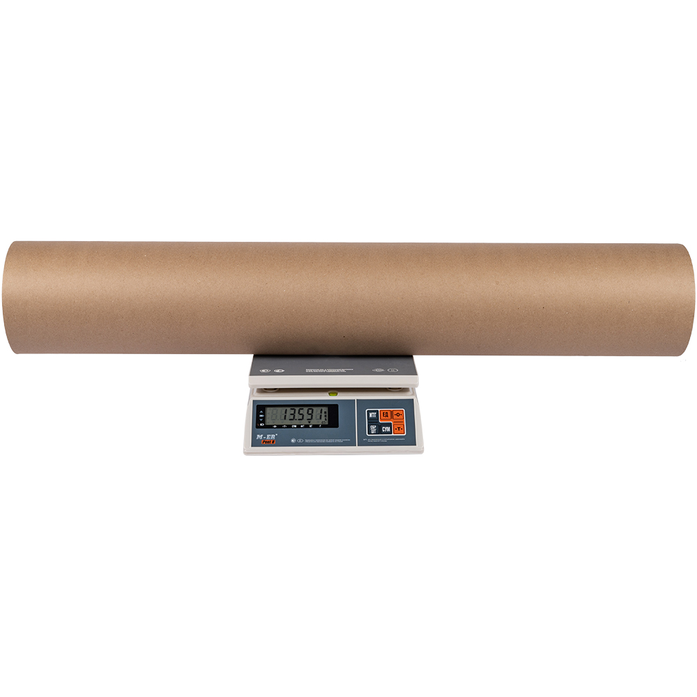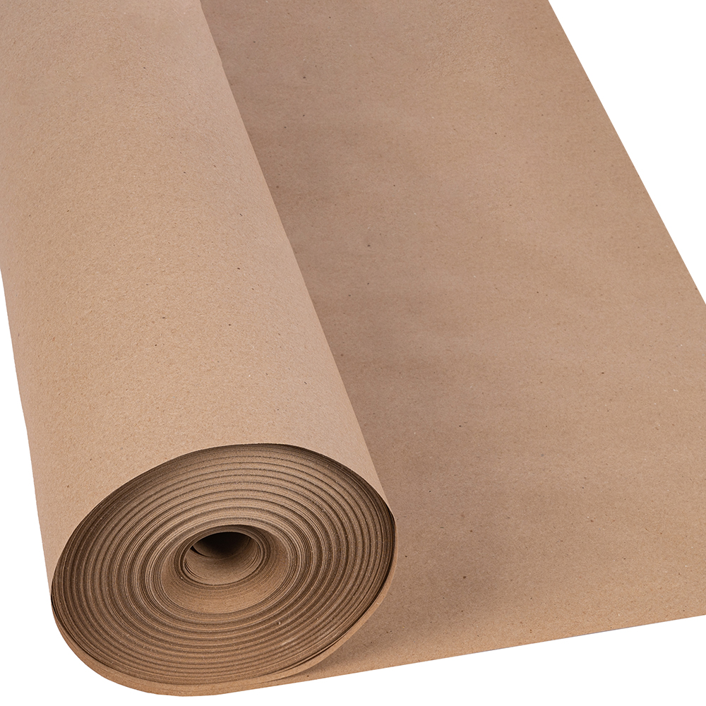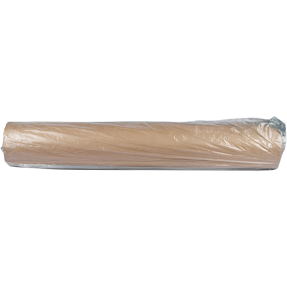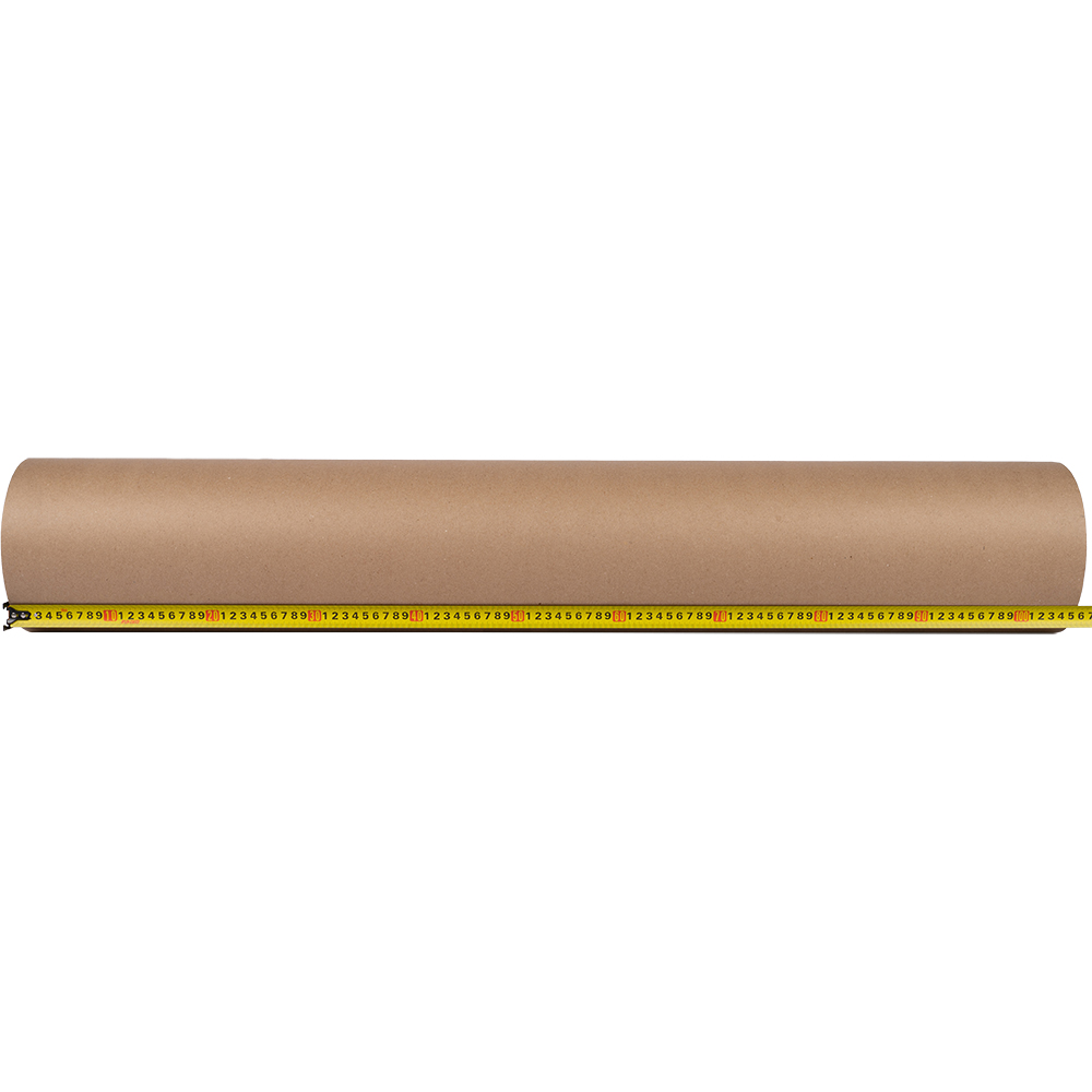 Оберточная крафт бумага в рулоне бурого цвета, шириной 1.05 м, намоткой 150 м, плотностью 80 г/м². Экологически чистый упаковочный материал из вторсырья. Производится в России.
