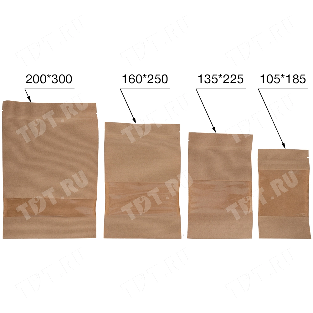 Крафт дой-пак с zip lock, прямоугольное окно 10 см, 12*6*18.5 см, 50 шт.