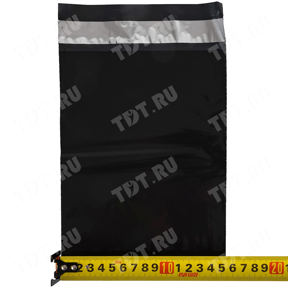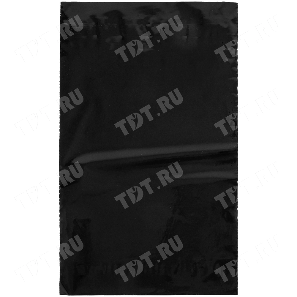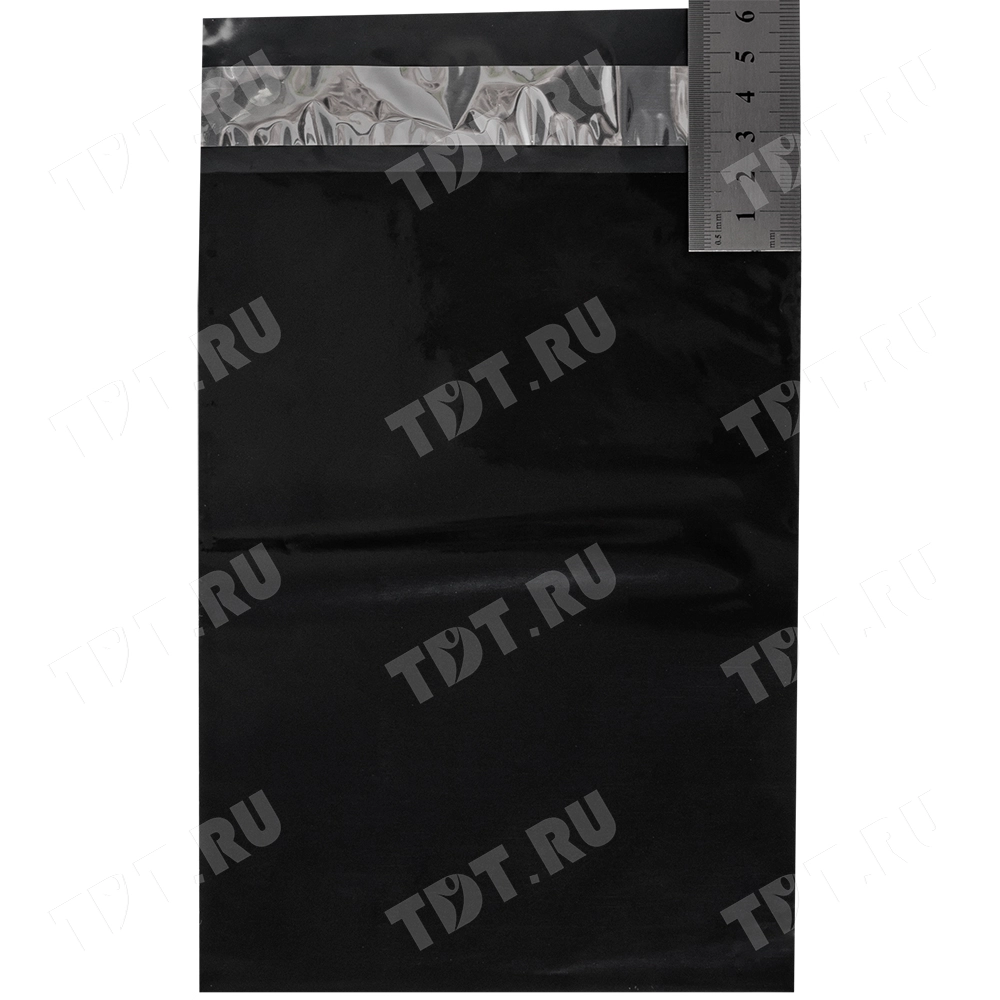 Чёрный курьер-пакет без кармана, без печати, длиной 210+40 мм, шириной 150 мм, толщиной 50 мкм. В упаковке 100 штук.
