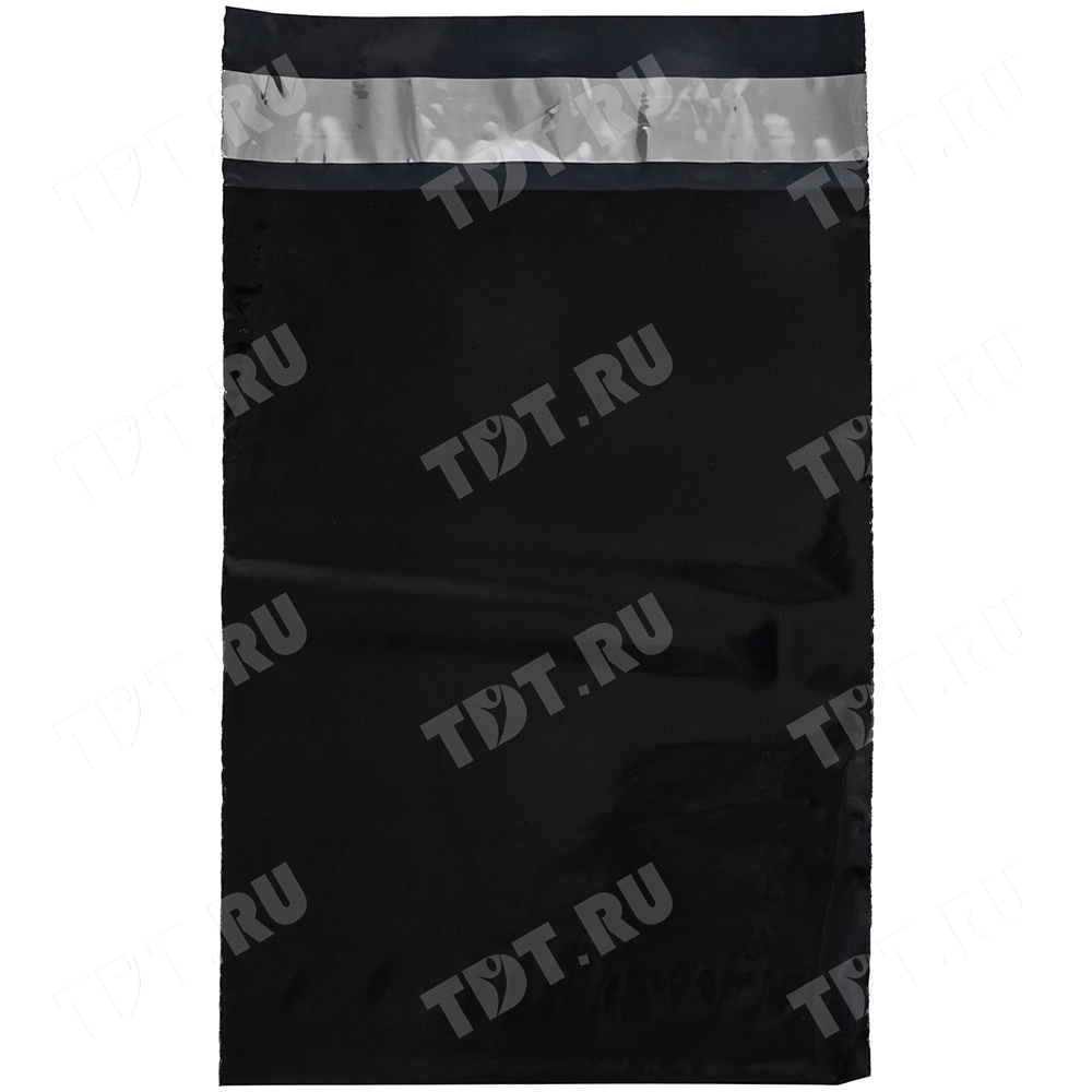Чёрный курьер-пакет без кармана, без печати, длиной 320+40 мм, шириной 240 мм, толщиной 50 мкм. В упаковке 100 штук.