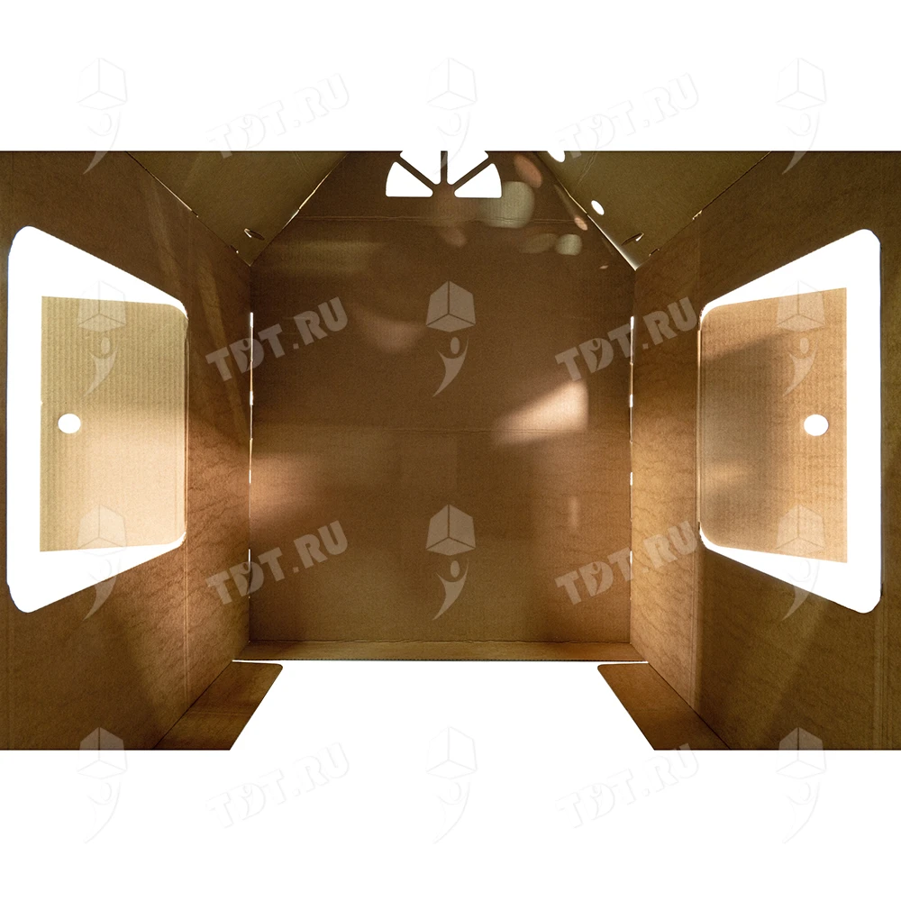 Внутри домик бурого однотонного цвета, при желании можно раскрасить. Какое-либо покрытие отсутствует.