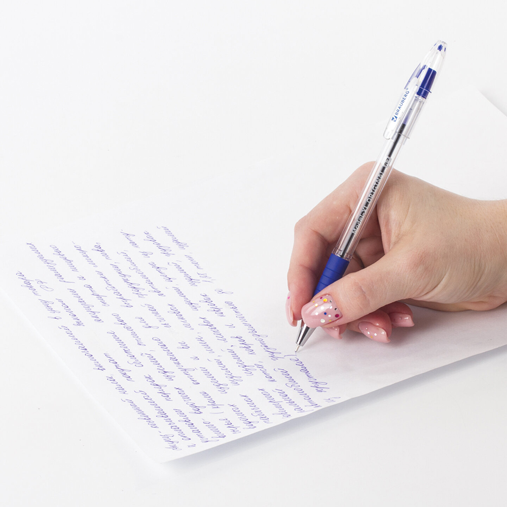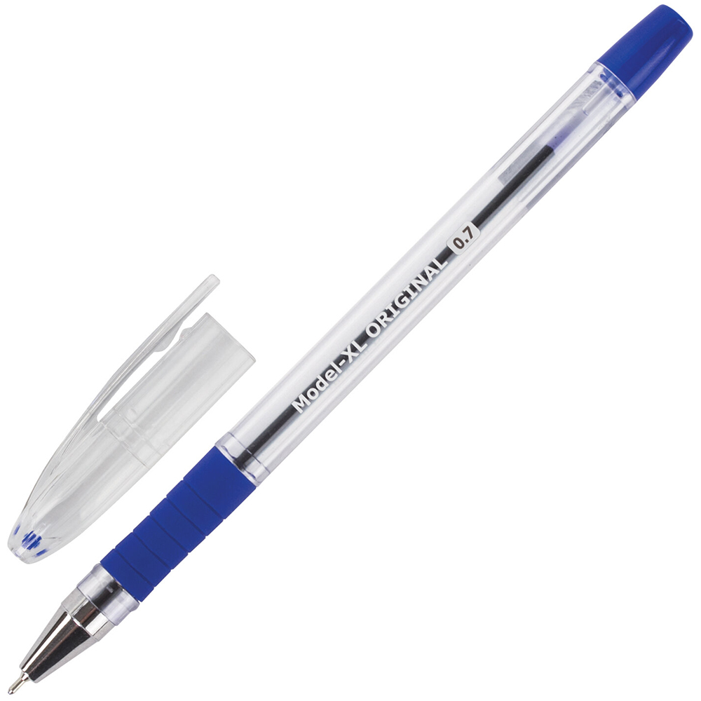 Шариковая ручка с грипом BRAUBERG Model-XL ORIGINAL, синие чернила на масляной основе, узел 0.7 мм, линия письма 0.35 мм. Производится в Китае.