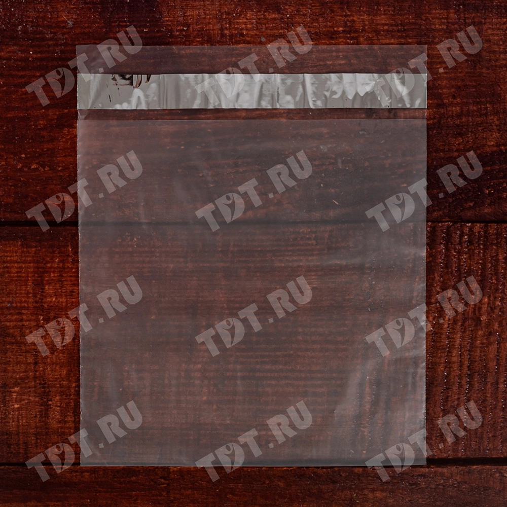 Прозрачный курьер-пакет без кармана, без печати, длиной 240+40 мм, шириной 170 мм, толщиной 50 мкм. В упаковке 100 штук.