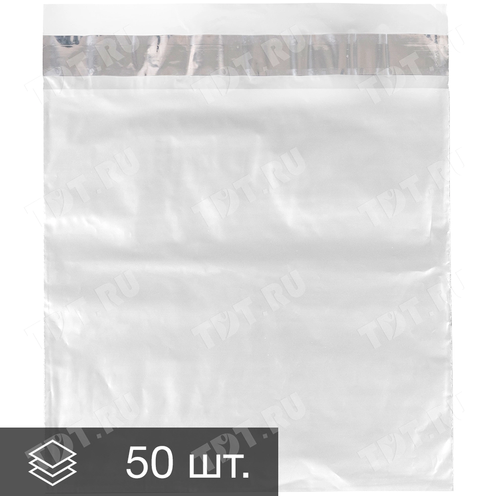 Прозрачный курьер-пакет без кармана, без печати, длиной 400+40 мм, шириной 300 мм, толщиной 50 мкм. В упаковке 50 штук.