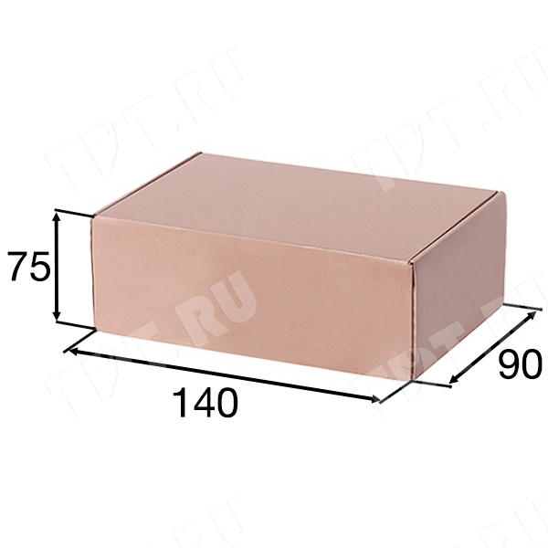 Короб №301 бурого цвета, длиной 140 мм, шириной 90 мм и высотой 75 мм. Изготовлен из микрогофрокартона Е-22. Полезный объём — 0.94 л.