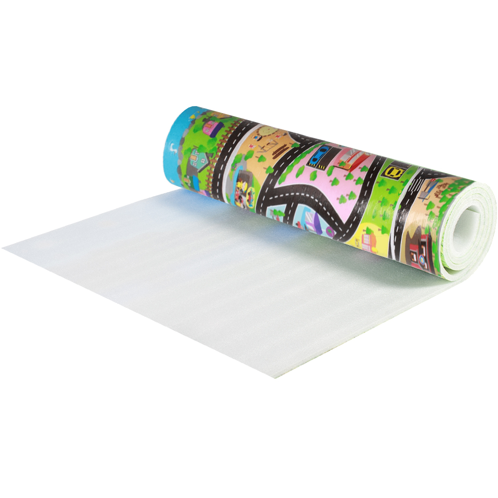 Коврик из вспененного полиэтилена «Город» c рисунком, намоткой 2 м, толщиной 10 мм, шириной 1.2 м, весом 1.95 кг. В упаковке 1 коврик. Производится в России.