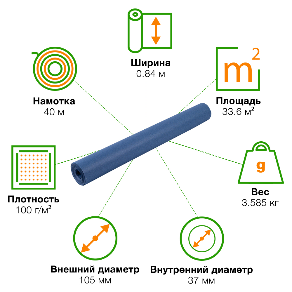 Оберточная крафт бумага в рулоне синего цвета, шириной 84 см, намоткой 40 м, плотностью 100 г/м². Экологически чистый упаковочный материал. Производится в России.