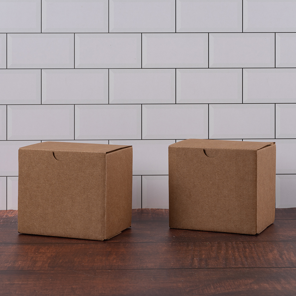 Самосборный короб №241 бурого цвета, длиной 125 мм, шириной 90 мм и высотой 110 мм. Изготовлена из микрогофрокартона Т-22 Е. Полезный объём — 1.24 л.