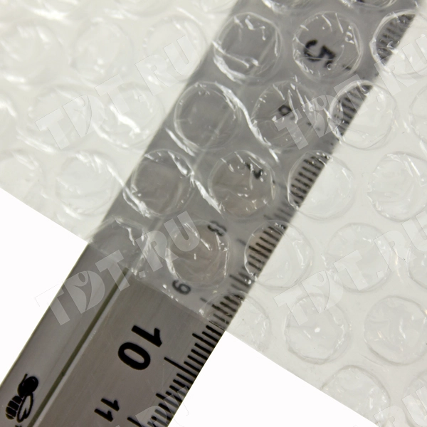 Прозрачная двухслойная воздушно-пузырчатая пленка «Оптима компакт», намоткой 100 м, шириной рулона 0.6 м, диаметром пузырька 10 мм, плотностью 35 г/м². Изготовлена из полиэтилена. Производится в России.