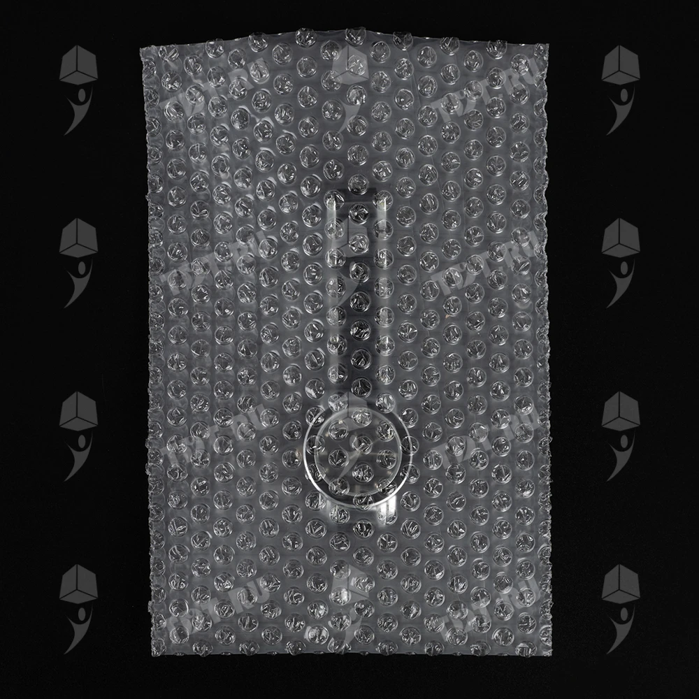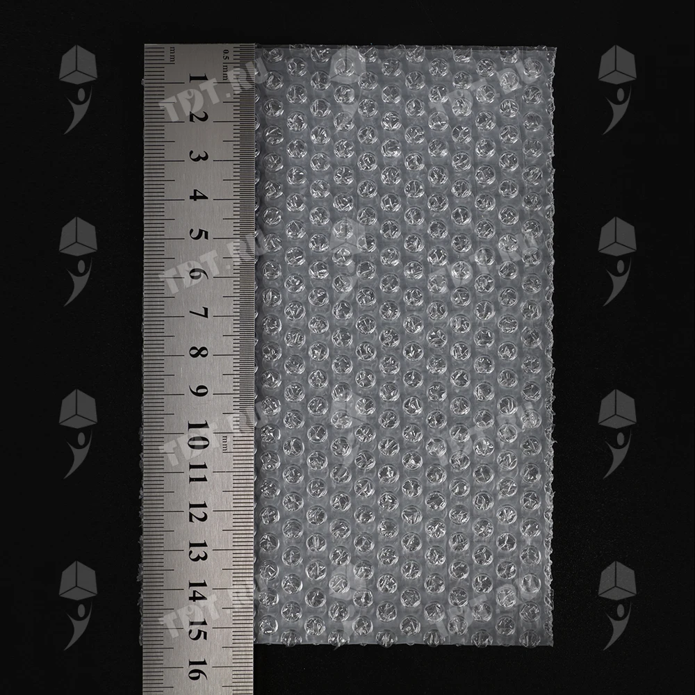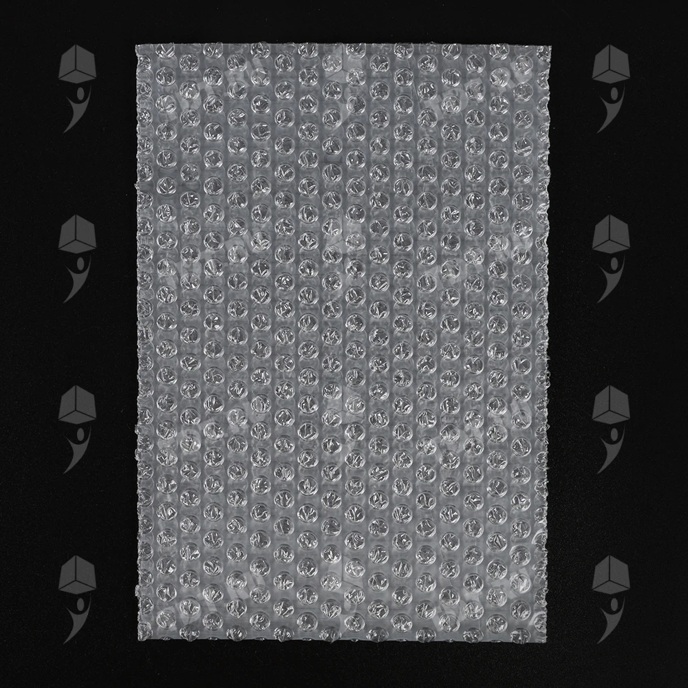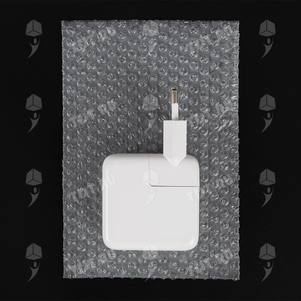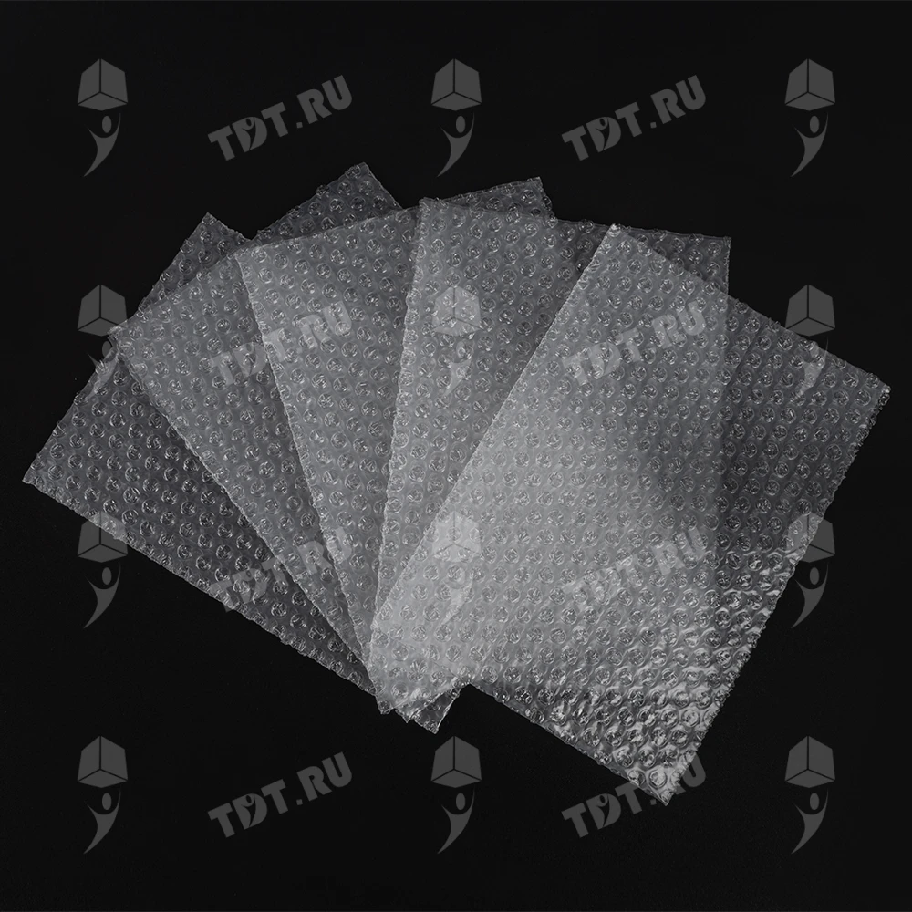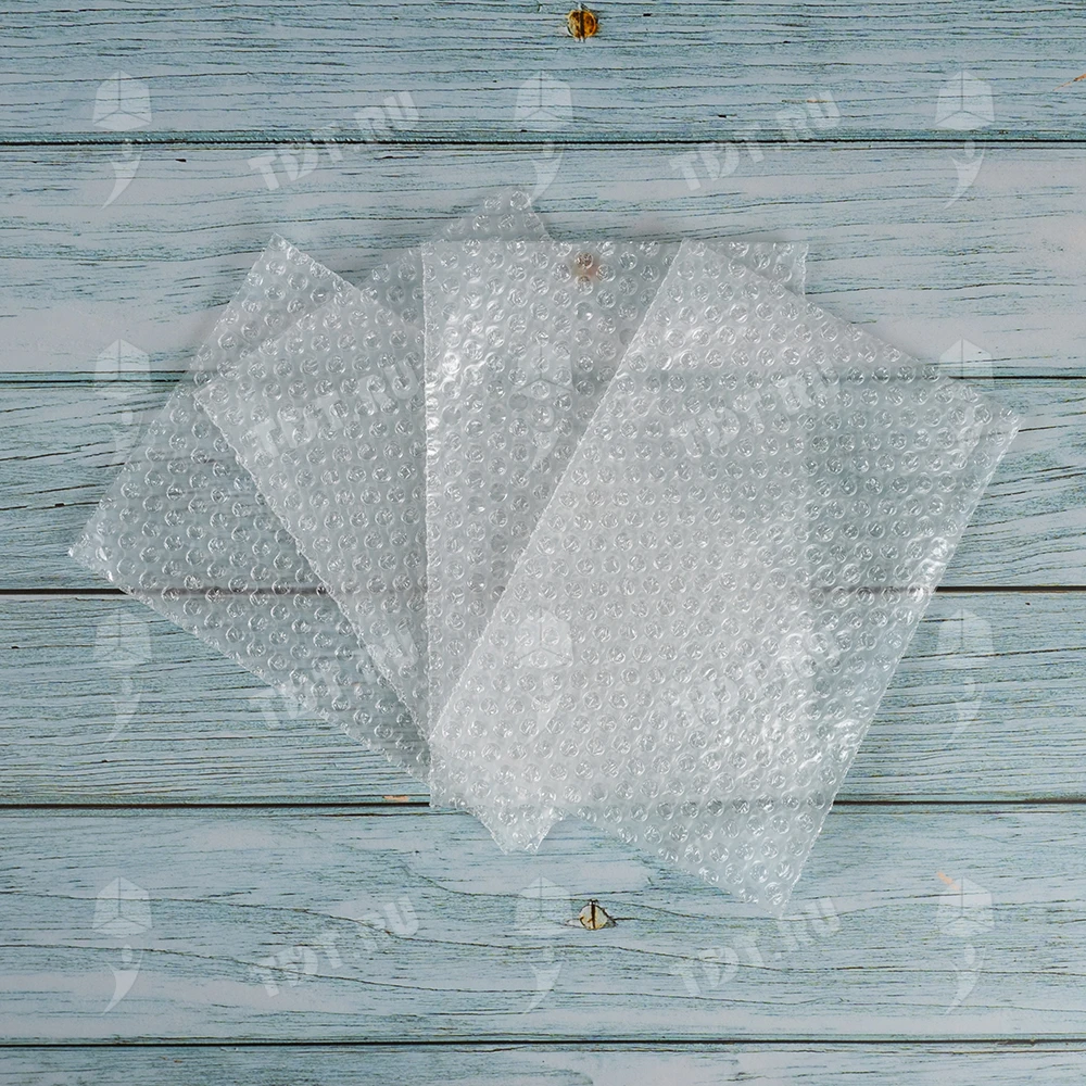 Прозрачные двухслойные воздушно-пузырчатые пакеты из пленки «МиниБабл», длиной 10 см, шириной 15 см, диаметром пузырька 5 мм, плотностью 25 г/м², открытие по узкой стороне. В коробке 300 пакетов. Изготовлен из полиэтилена. Производится в России.