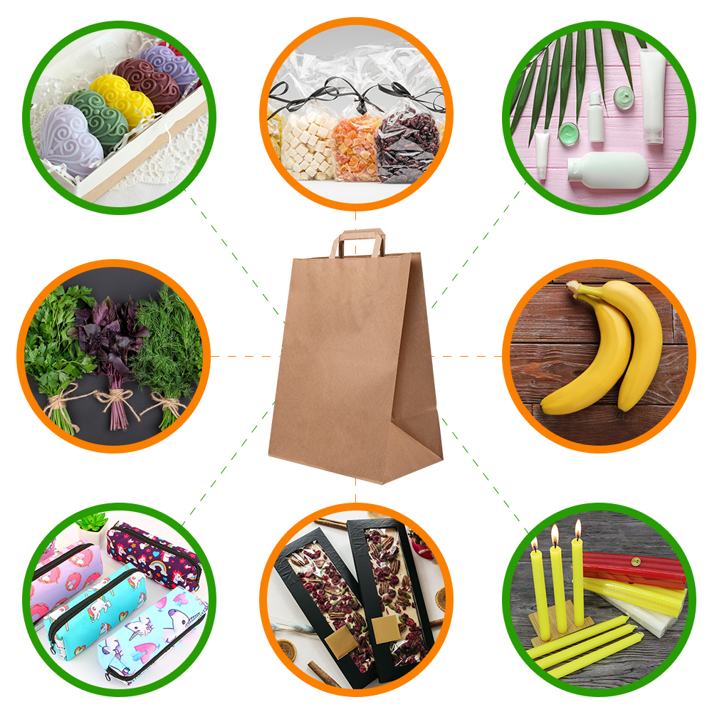Пакеты с плоской ручкой используются для упаковки, переноски, хранения продуктов питания и бытовых товаров. Они незаменимы в магазинах, пекарнях, кафе, ресторанах и на фудкортах.