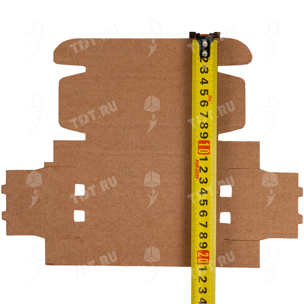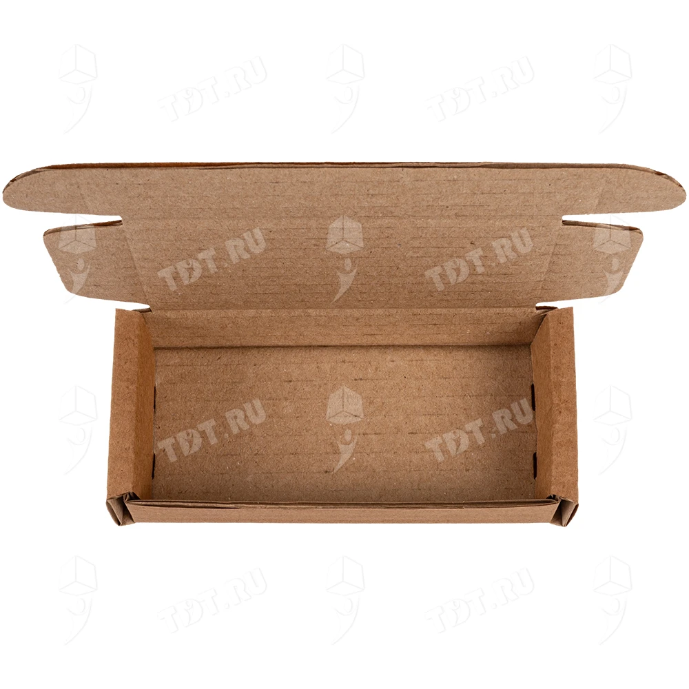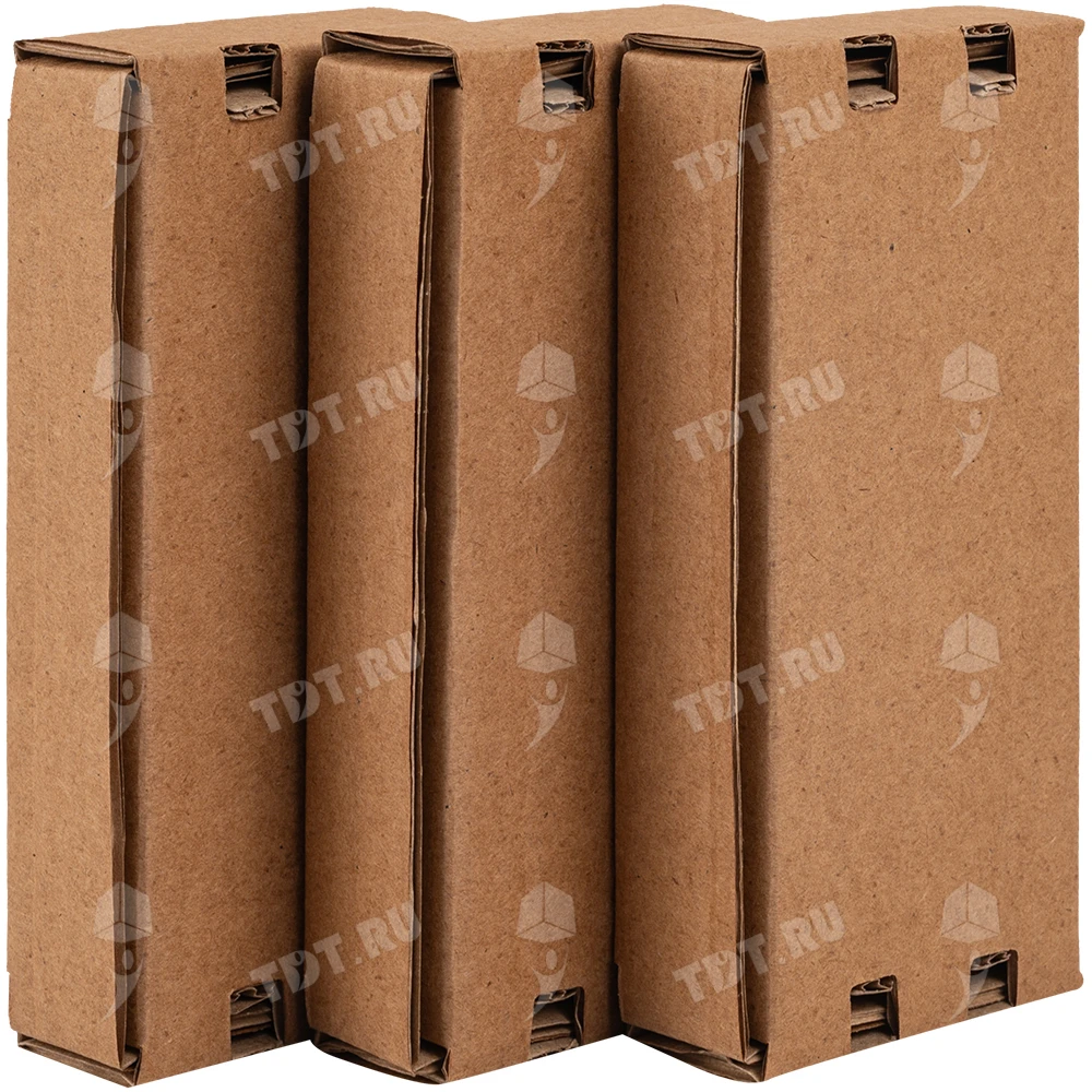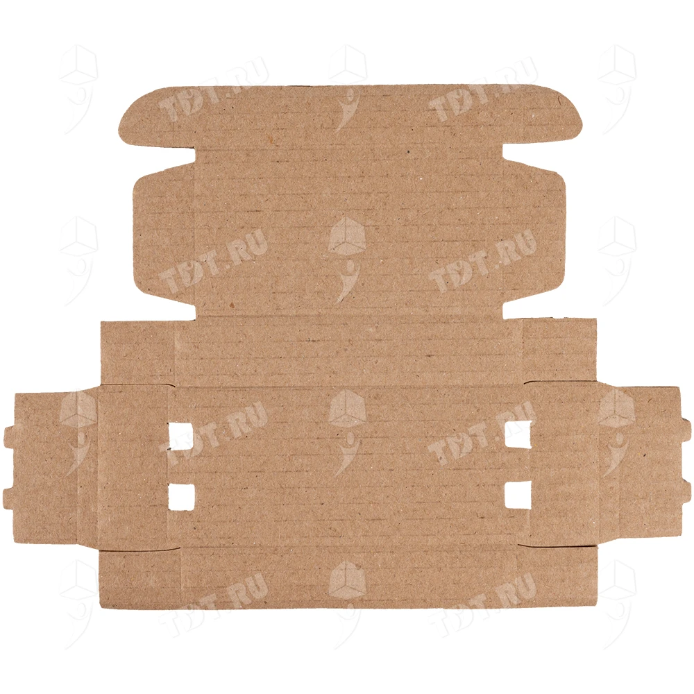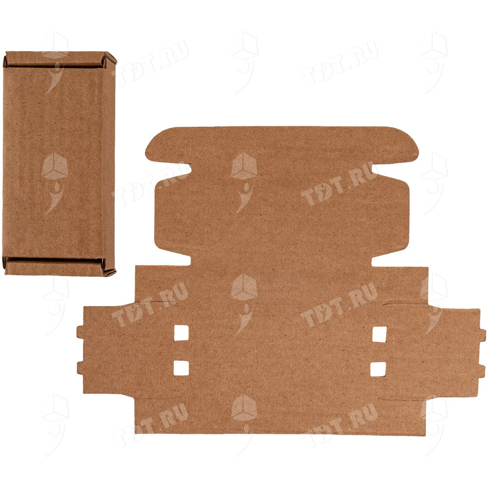 Самосборный короб №125 бурого цвета, длиной 120 мм, шириной 60 мм и высотой 25 мм. Изготовлен из гофрокартона Т-23 В. Полезный объём — 0.18 л.