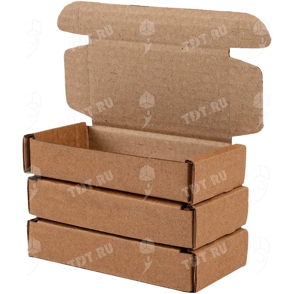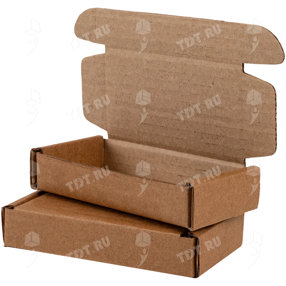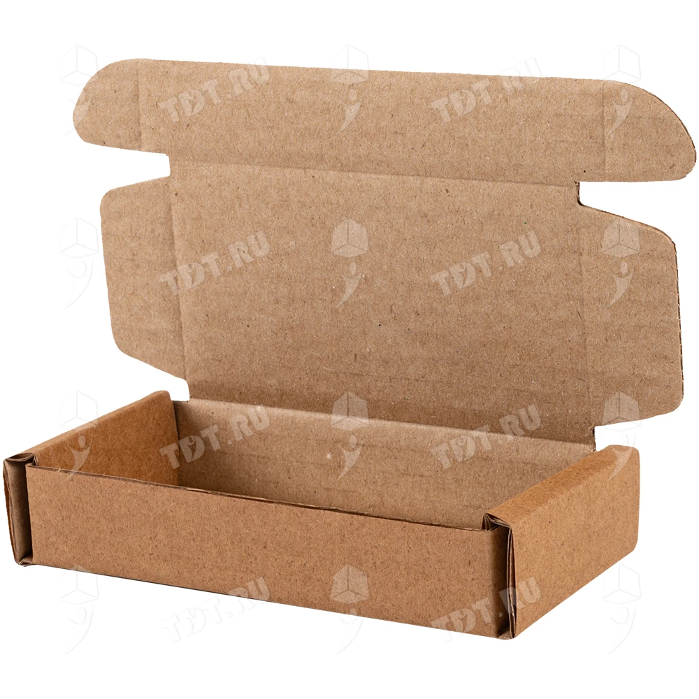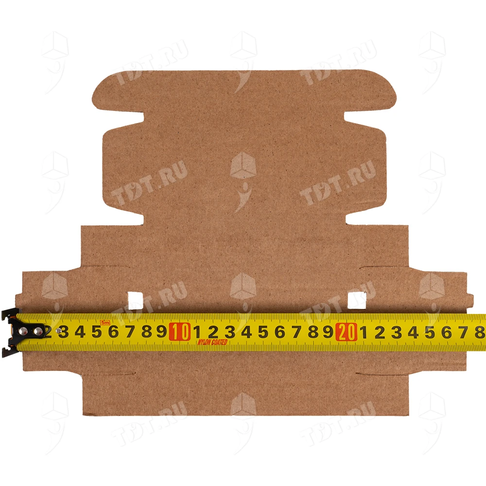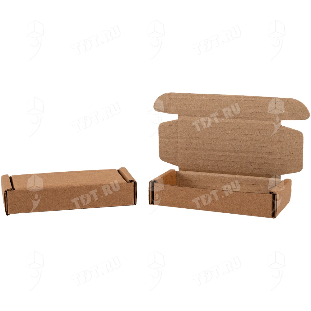Самосборный короб №125 бурого цвета, длиной 120 мм, шириной 60 мм и высотой 25 мм. Изготовлен из гофрокартона Т-23 В. Полезный объём — 0.18 л.