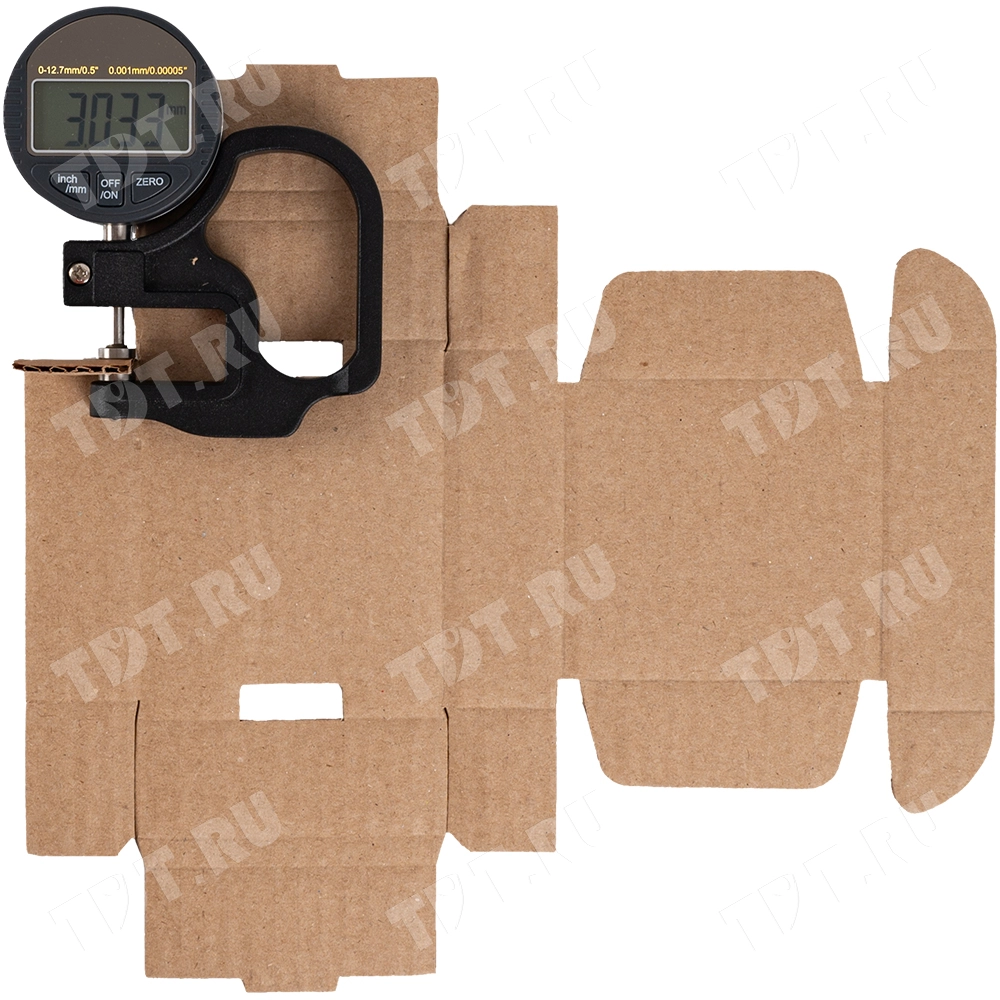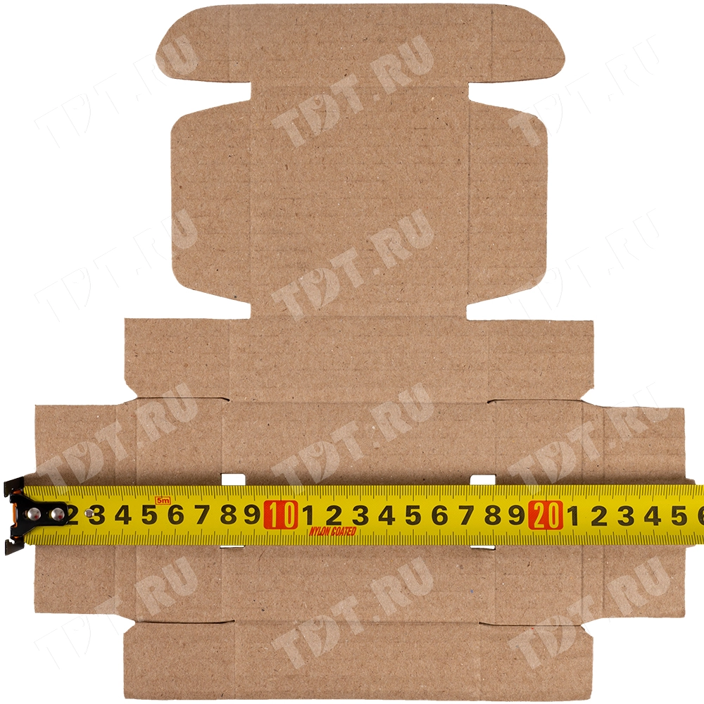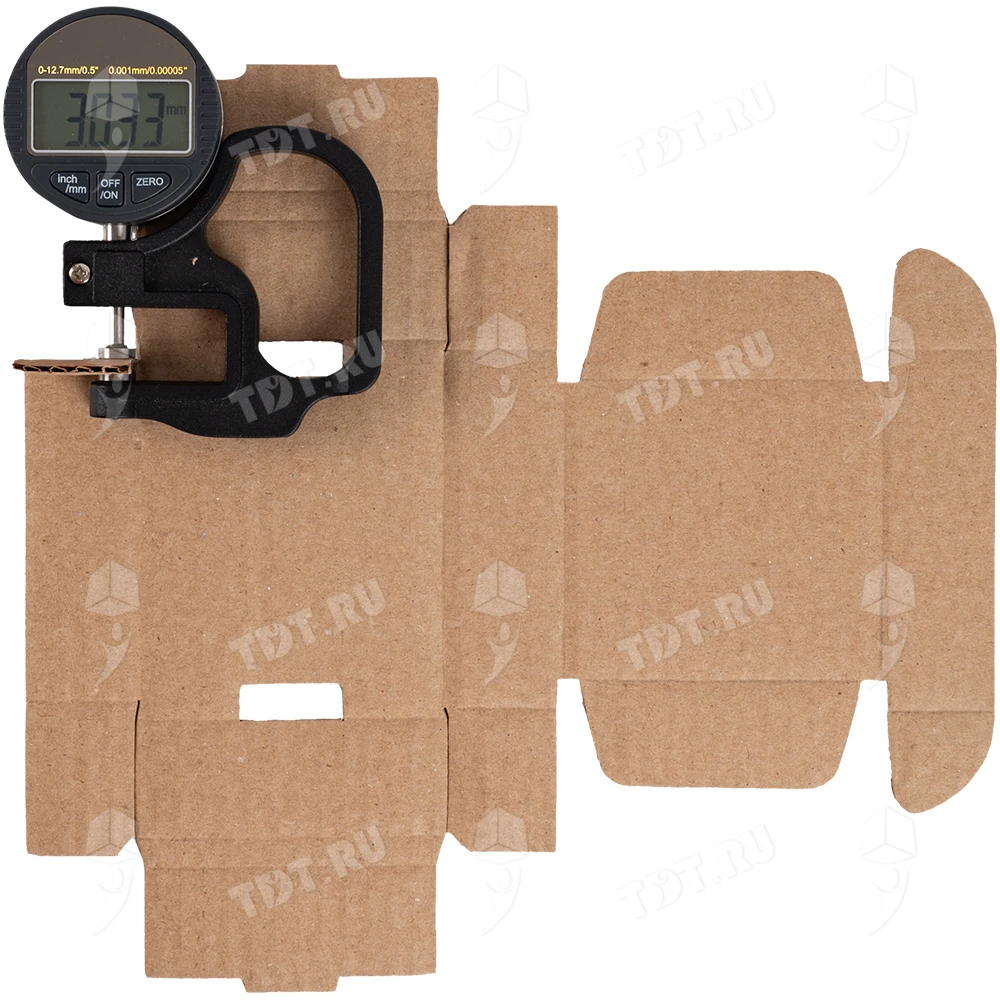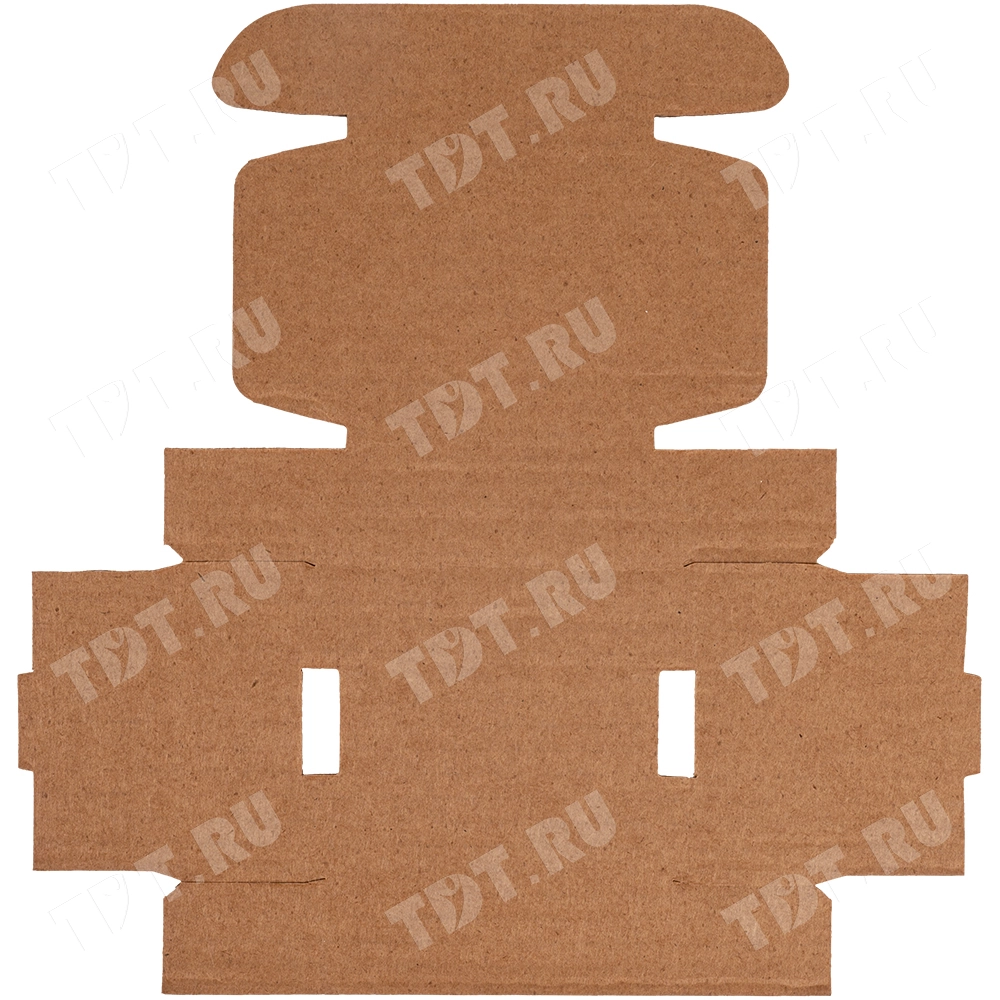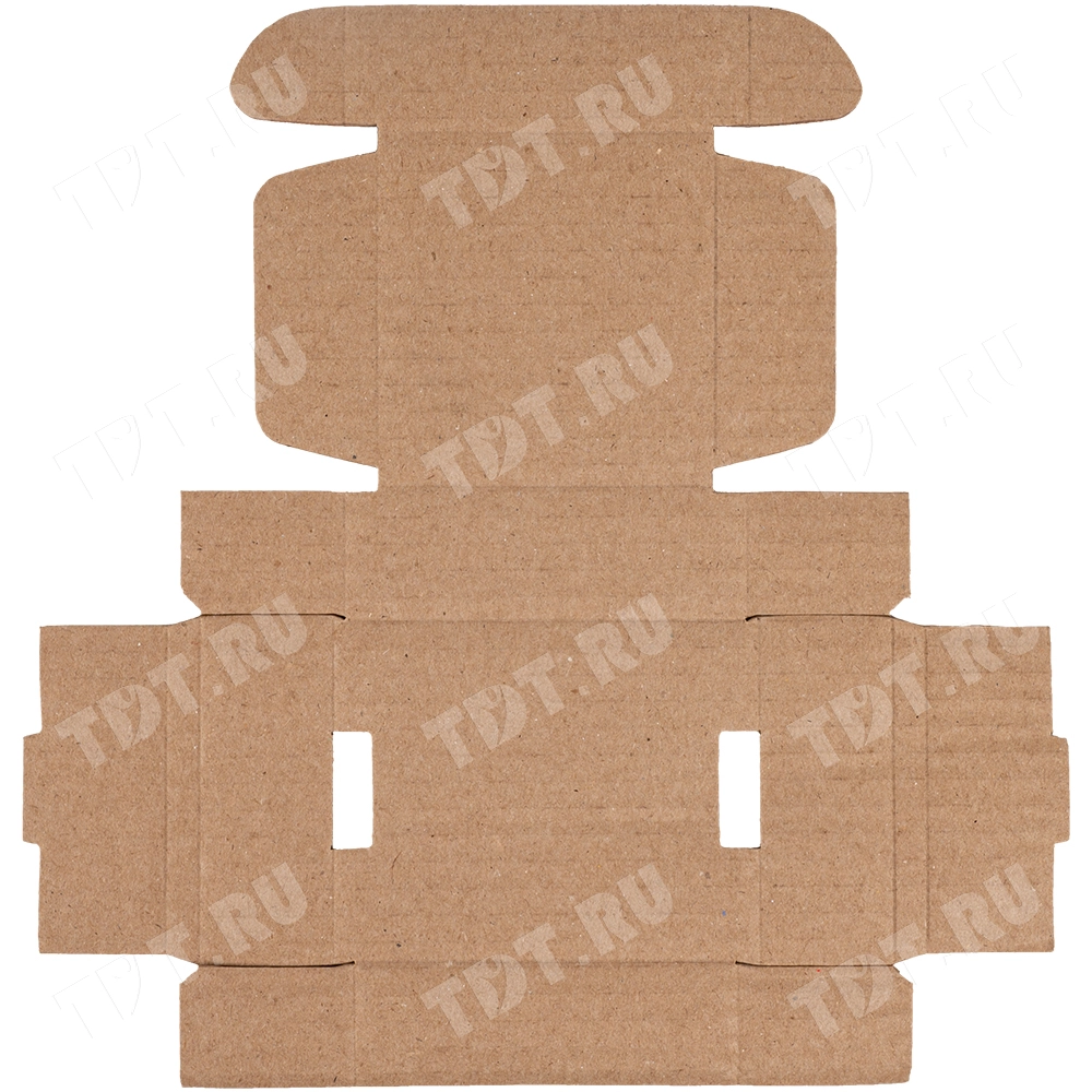 Самосборный короб №126 бурого цвета, длиной 80 мм, шириной 80 мм и высотой 30 мм. Изготовлен из гофрокартона Т-23 В. Полезный объём — 0.192 л.