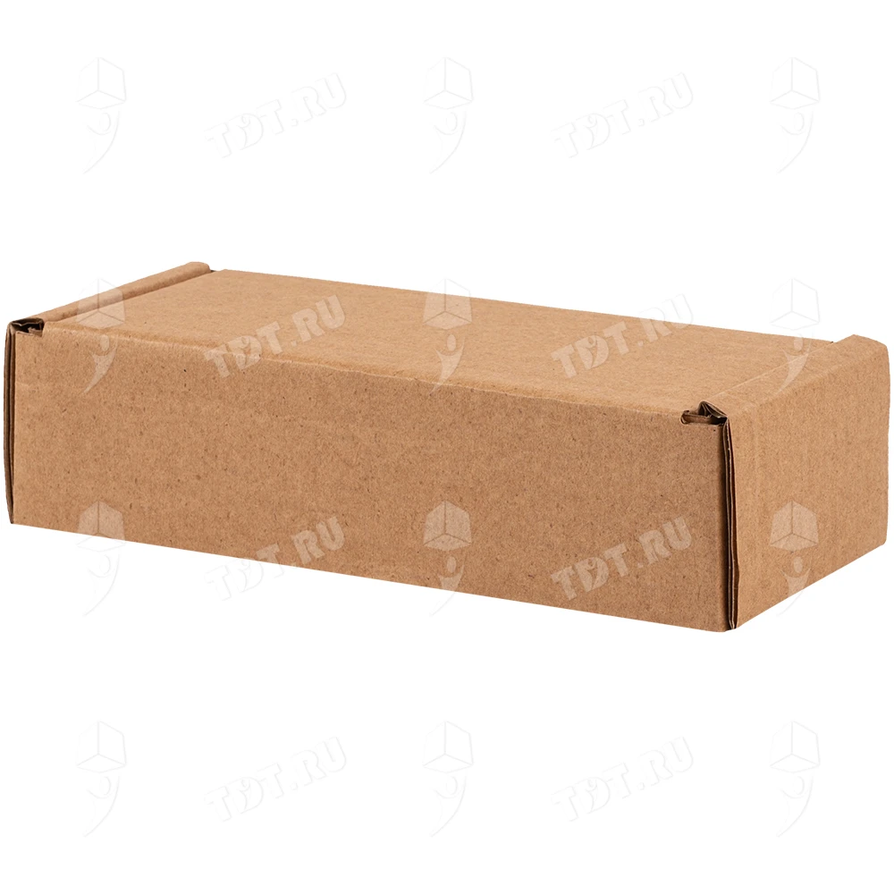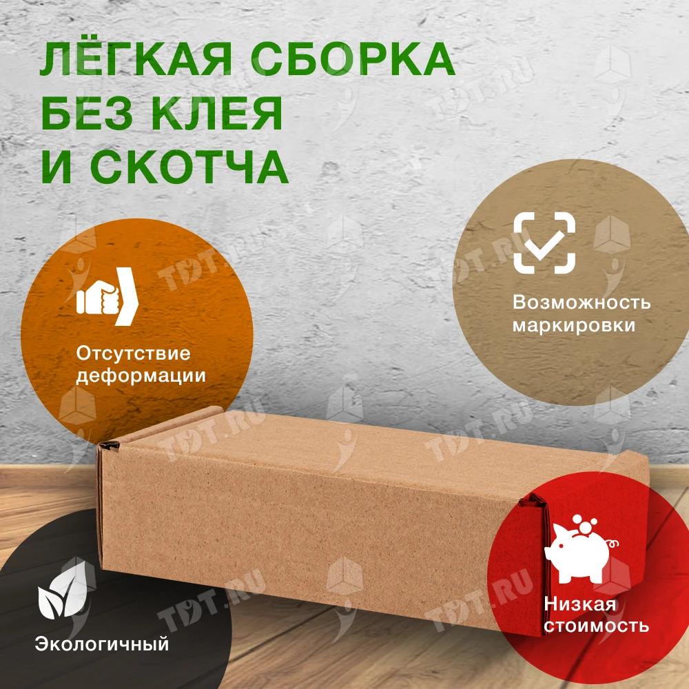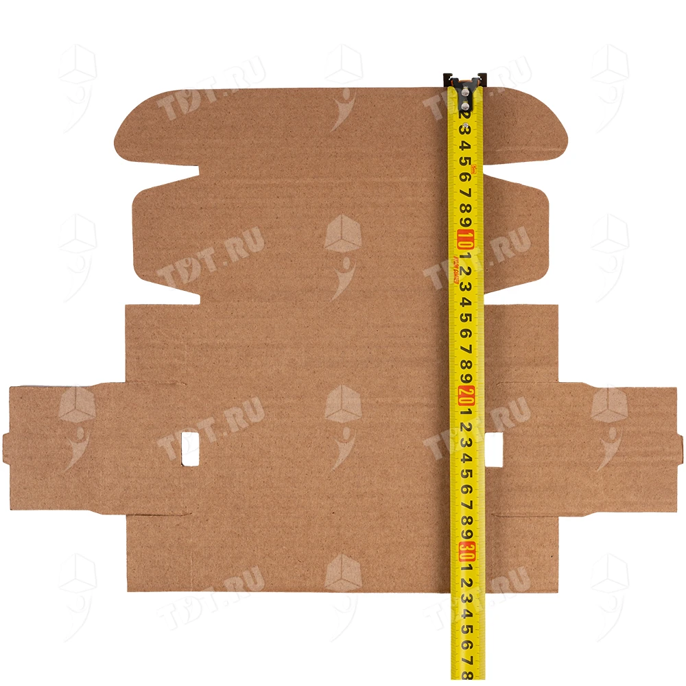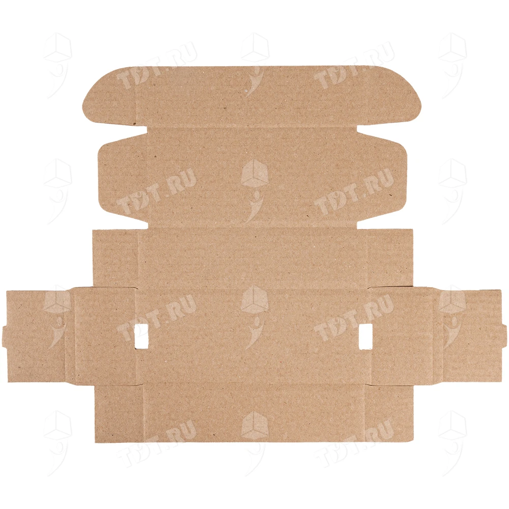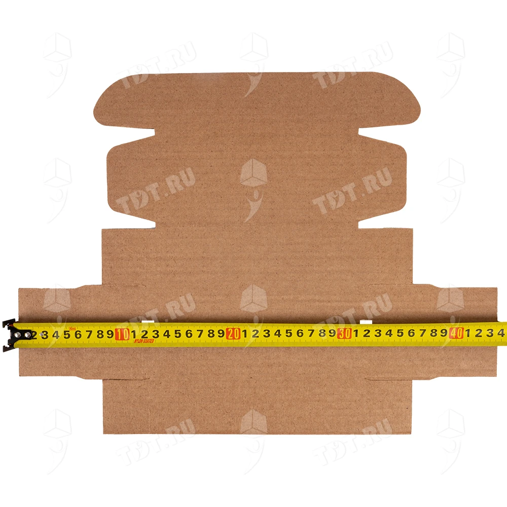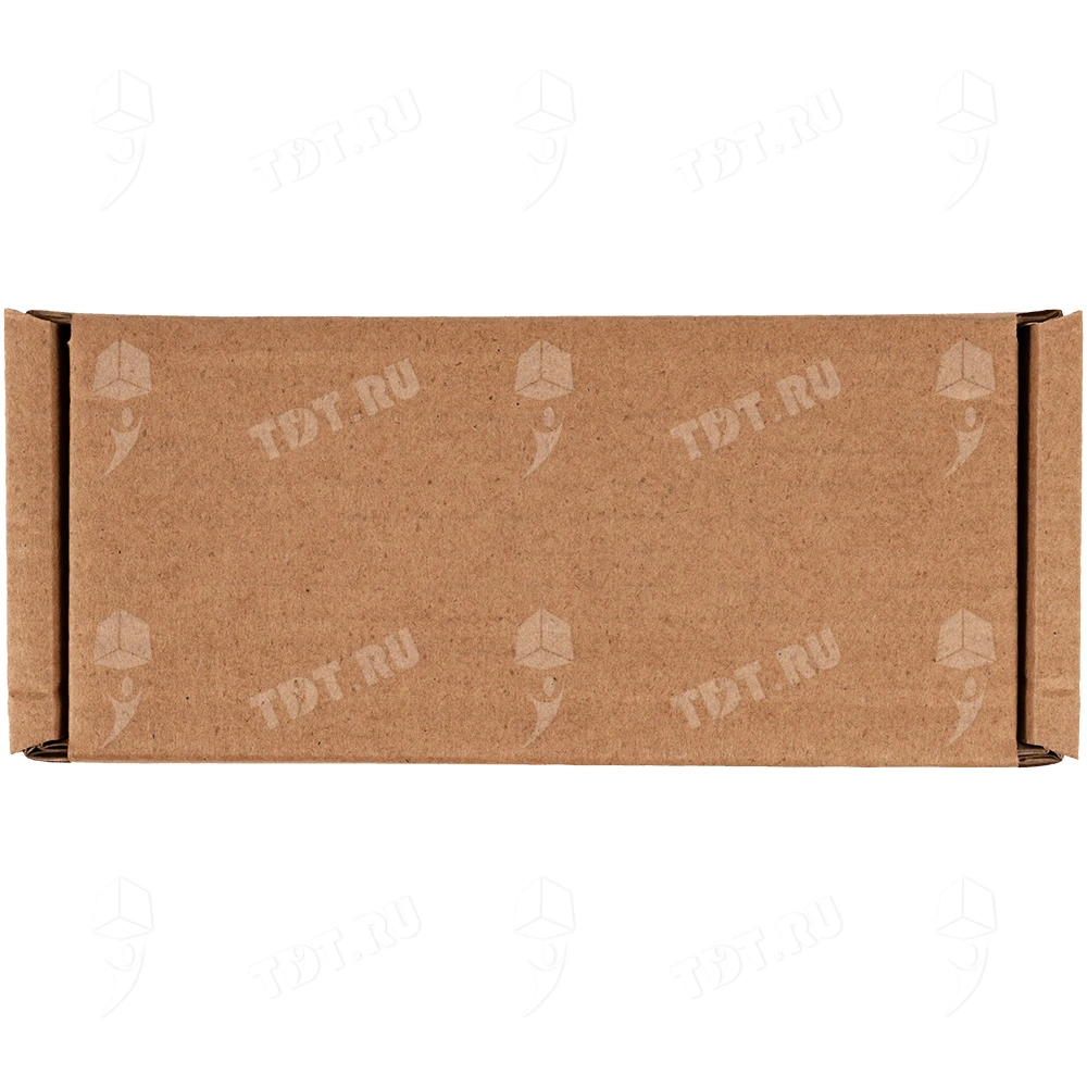Самосборный короб №127 бурого цвета, длиной 180 мм, шириной 80 мм и высотой 50 мм. Изготовлен из гофрокартона Т-23 В. Полезный объём — 0.72 л.