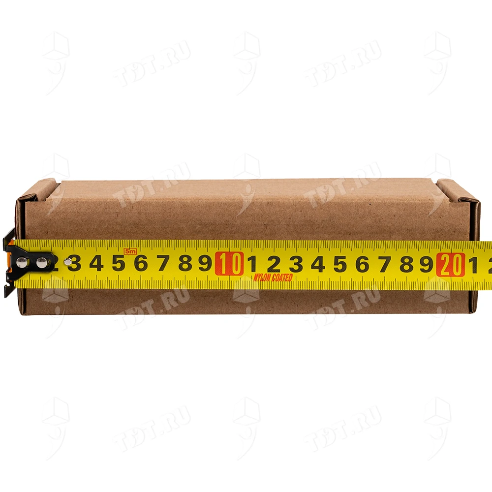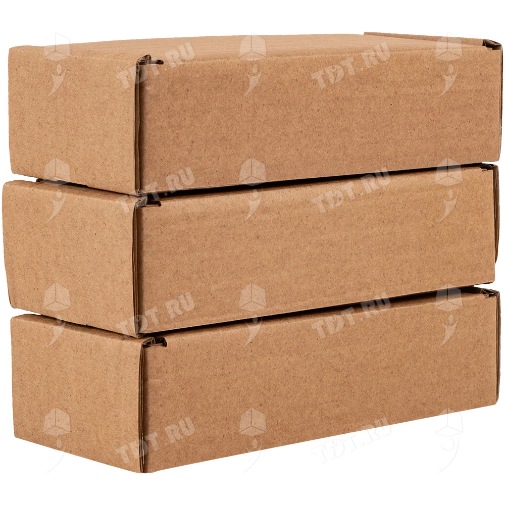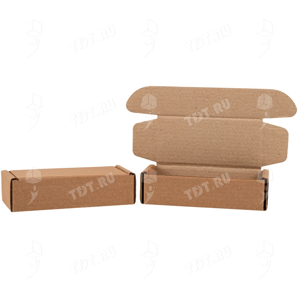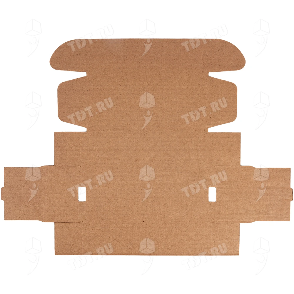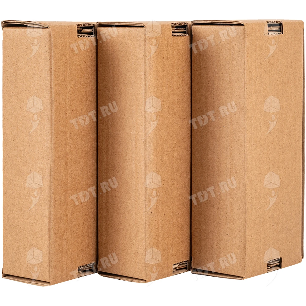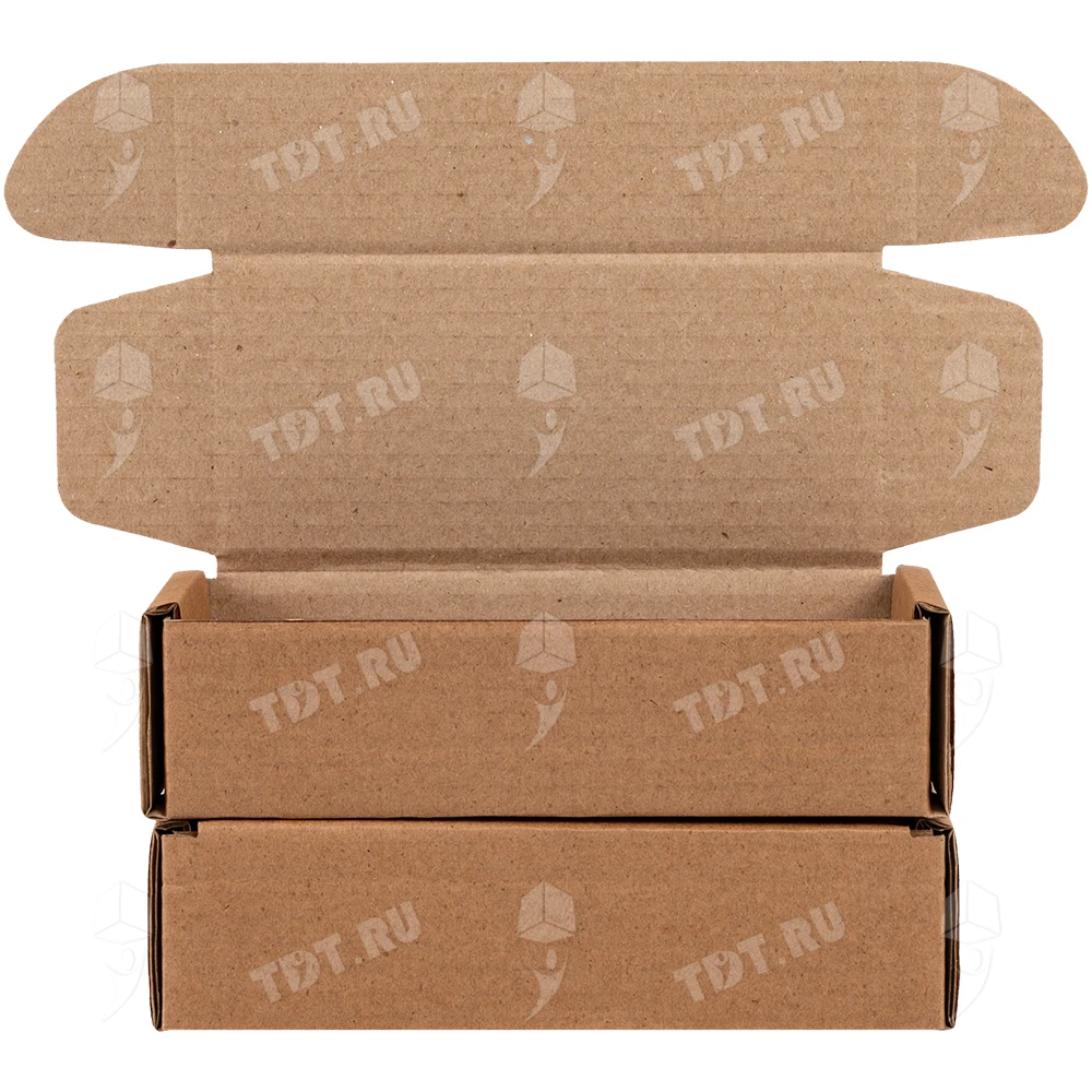 Самосборный короб №127 бурого цвета, длиной 180 мм, шириной 80 мм и высотой 50 мм. Изготовлен из гофрокартона Т-23 В. Полезный объём — 0.72 л.