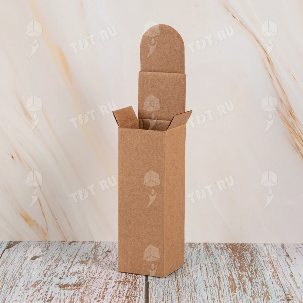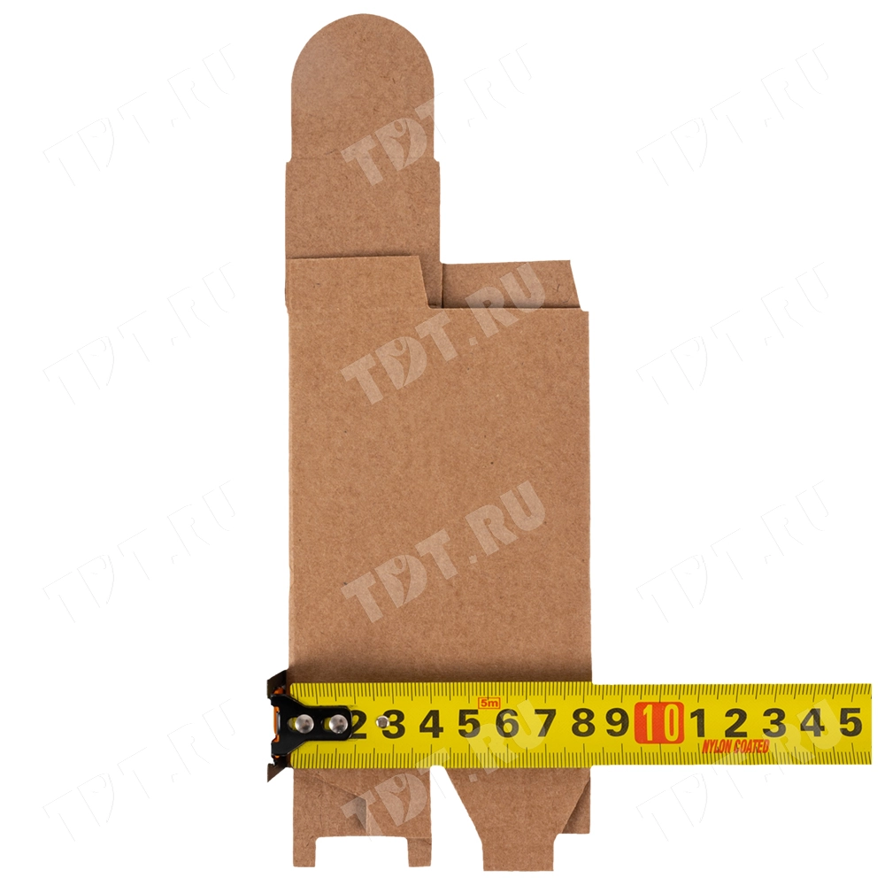 Самосборный короб №139 «Ласточкин хвост» бурого цвета, длиной 40 мм, шириной 40 мм и высотой 120 мм. Изготовлен из гофрокартона Т-23 Е. Полезный объём — 0.19 л.