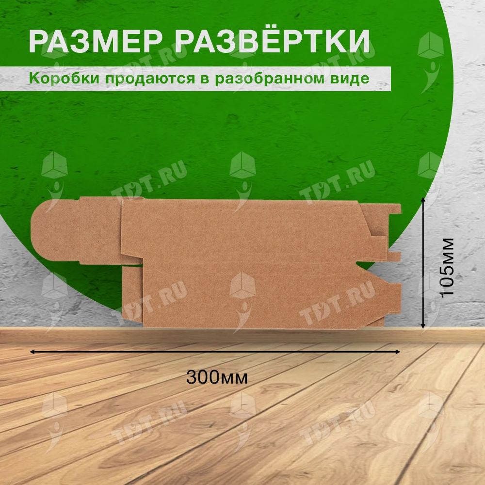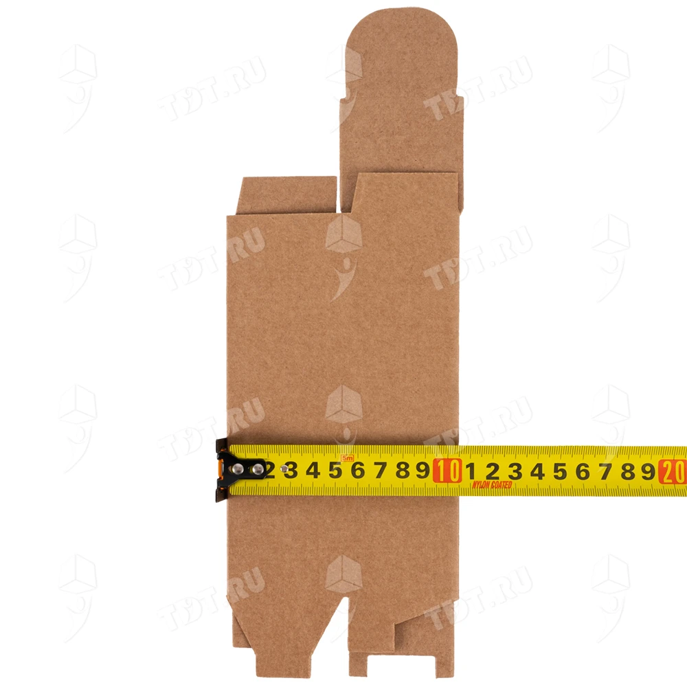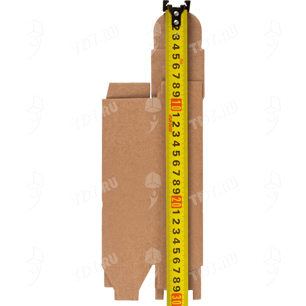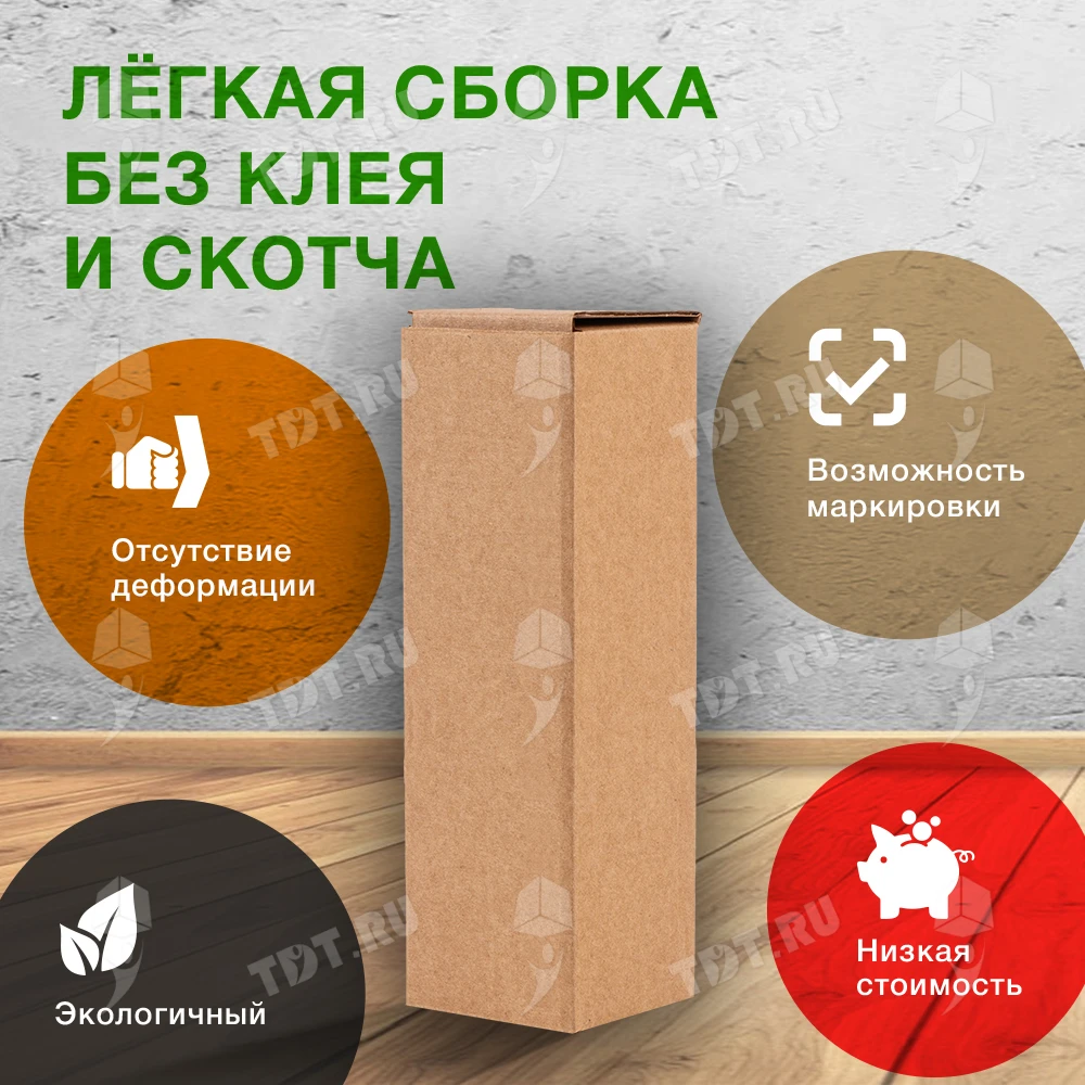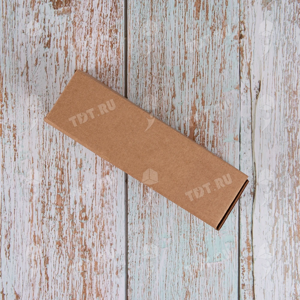 Самосборный короб №152 «Ласточкин хвост» бурого цвета, длиной 50 мм, шириной 50 мм и высотой 170 мм. Изготовлен из гофрокартона Т-23 Е. Полезный объём — 0.43 л.