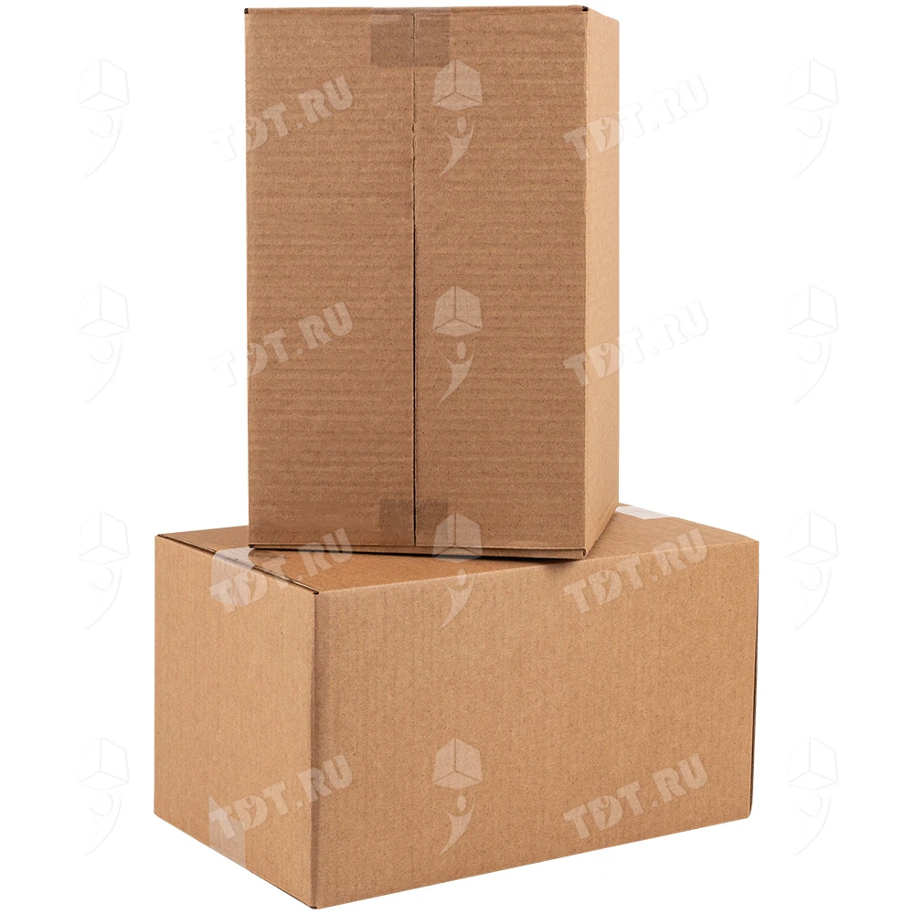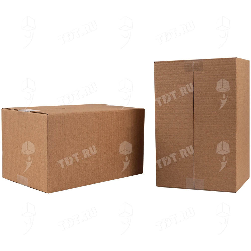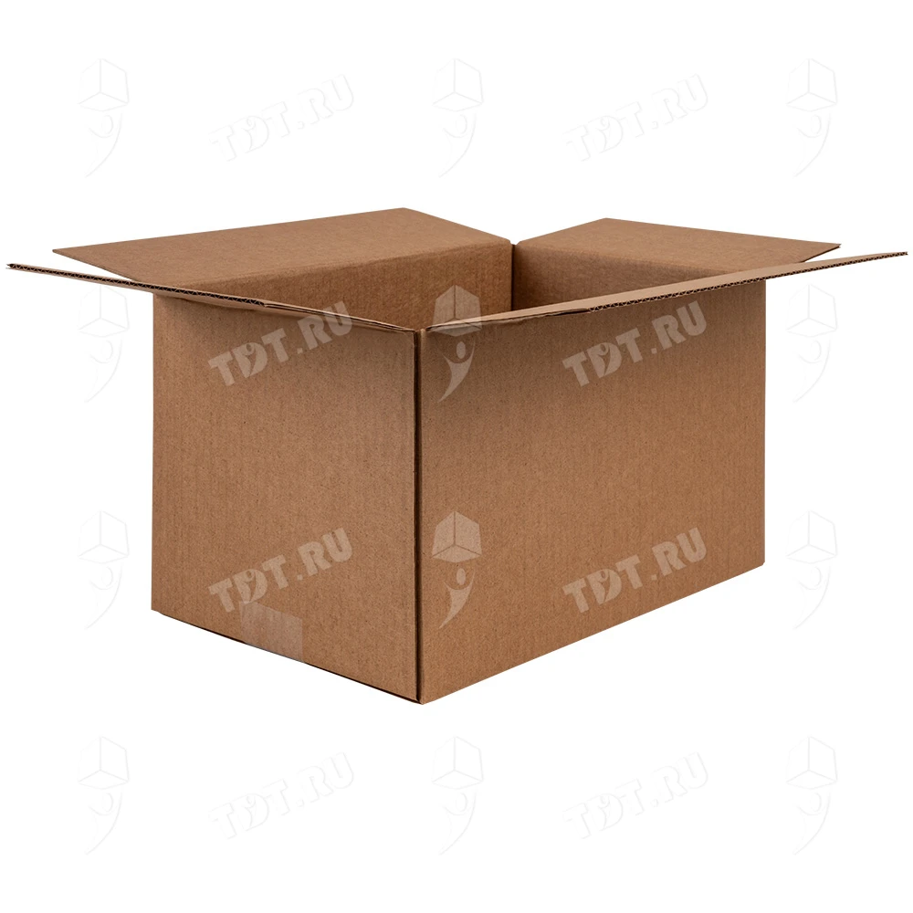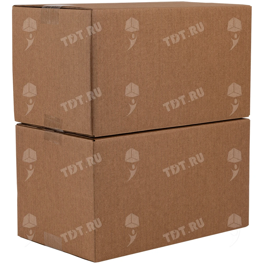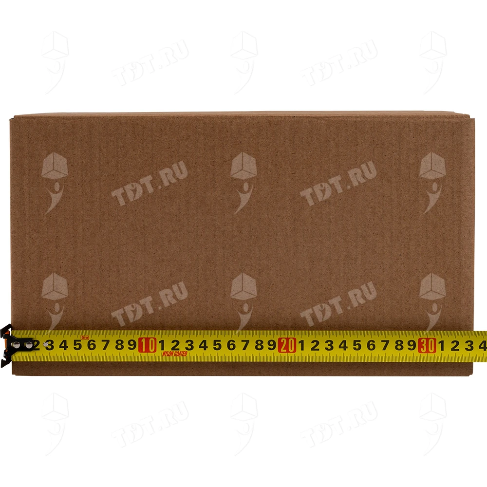 Четырехклапанный короб №164 бурого цвета, длиной 320 мм, шириной 200 мм и высотой 180 мм. Изготовлен из трехслойного картона марки Т-23 В. Полезный объём — 11.52 л.