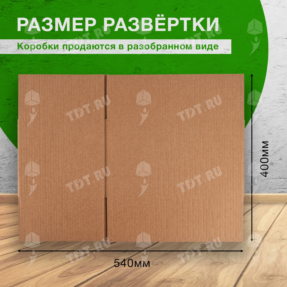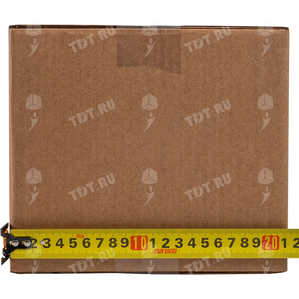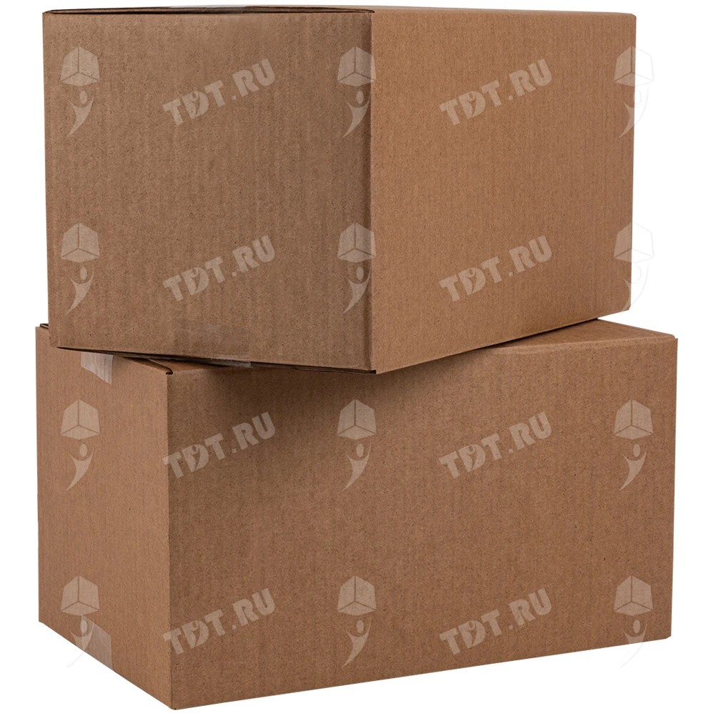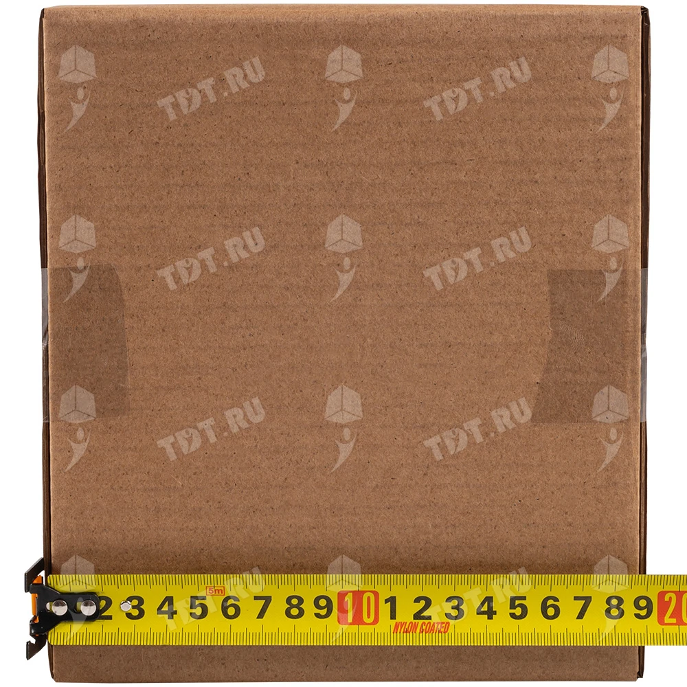 Четырехклапанный короб №164 бурого цвета, длиной 320 мм, шириной 200 мм и высотой 180 мм. Изготовлен из трехслойного картона марки Т-23 В. Полезный объём — 11.52 л.