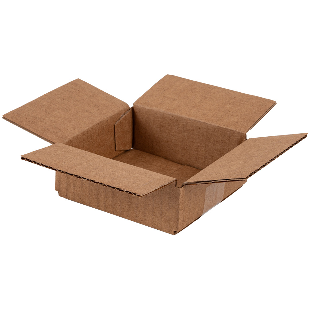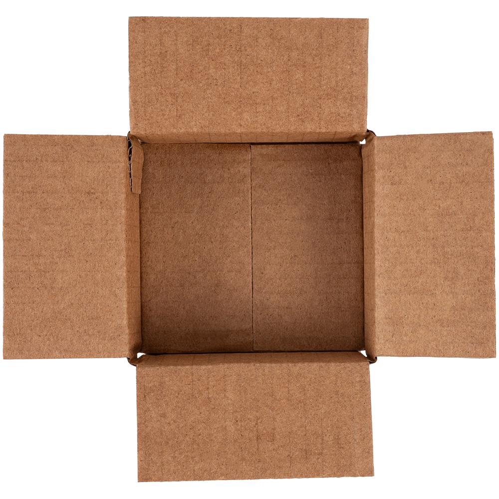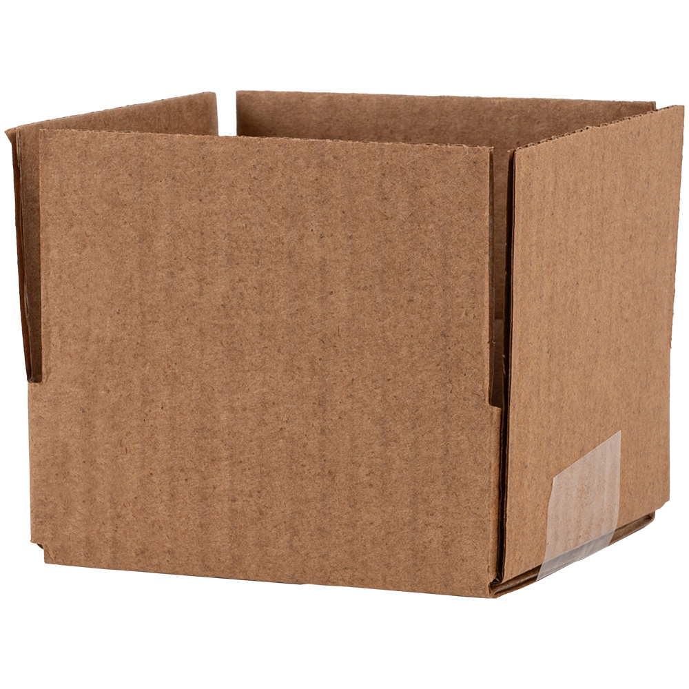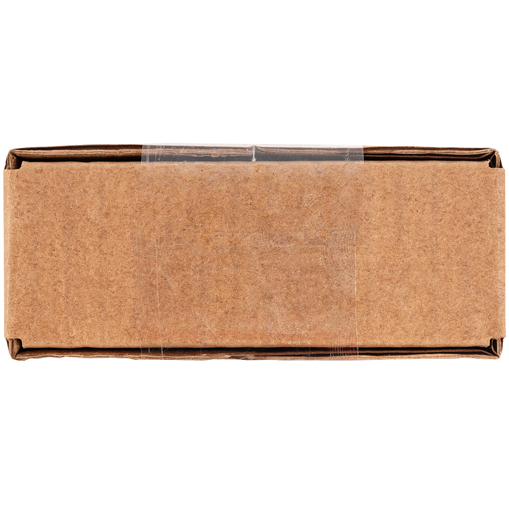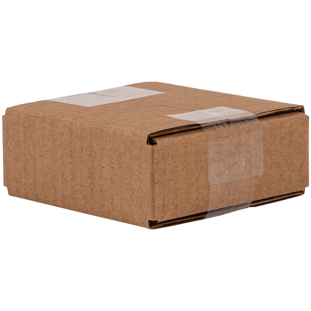 Четырехклапанный короб №166 бурого цвета, длиной 95 мм, шириной 90 мм и высотой 30 мм. Изготовлен из трехслойного картона марки Т-23 В. Полезный объём — 0.26 л.