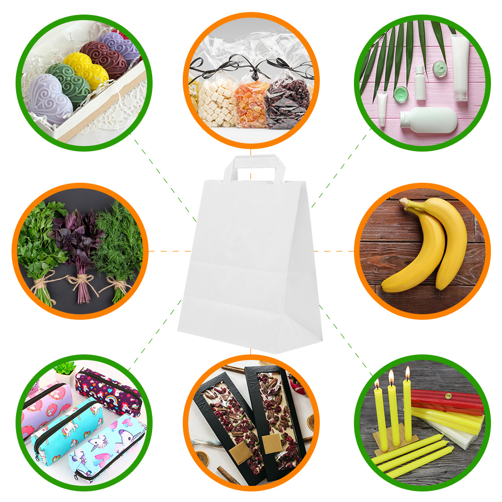 Пакеты с плоской ручкой используются для упаковки, переноски, хранения продуктов питания и бытовых товаров. Они незаменимы в магазинах, пекарнях, кафе, ресторанах и на фудкортах.