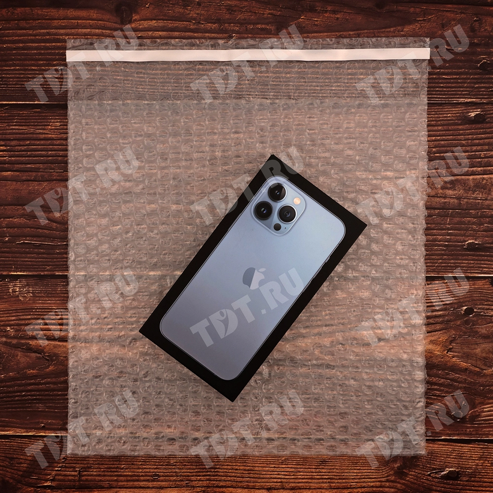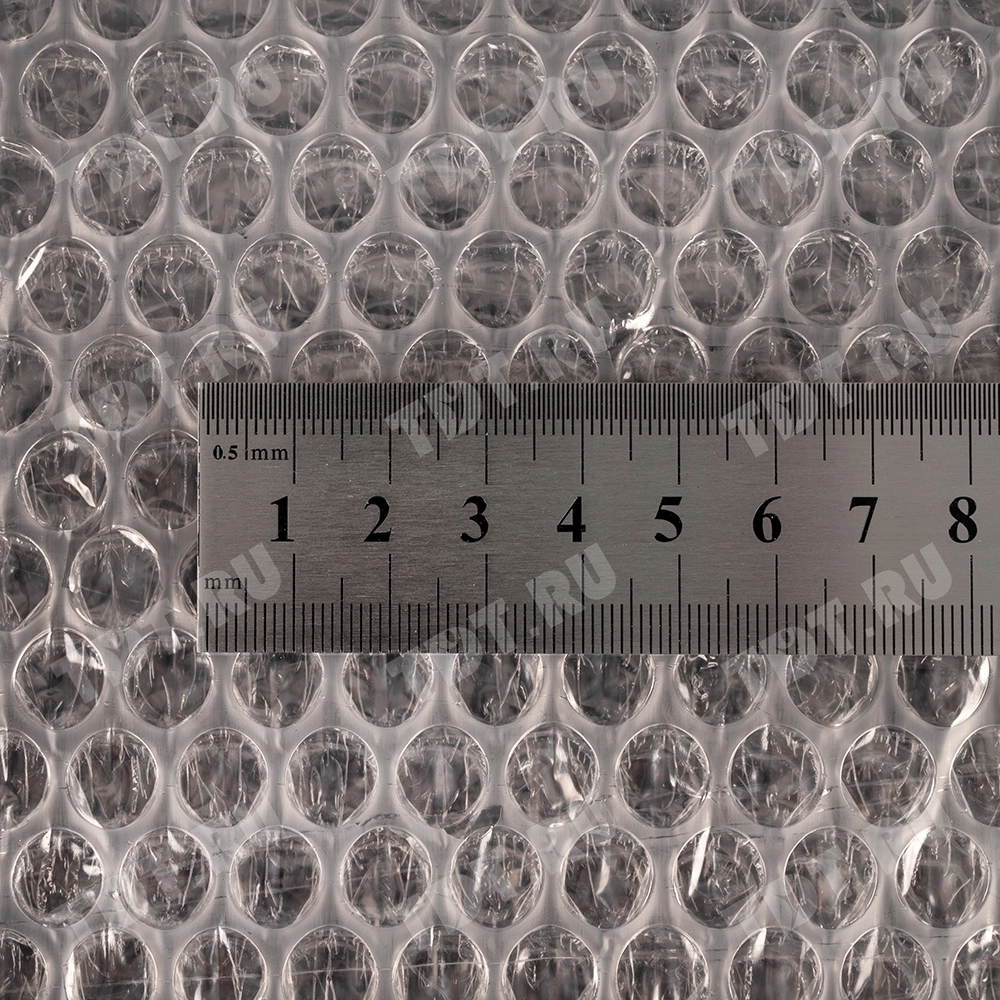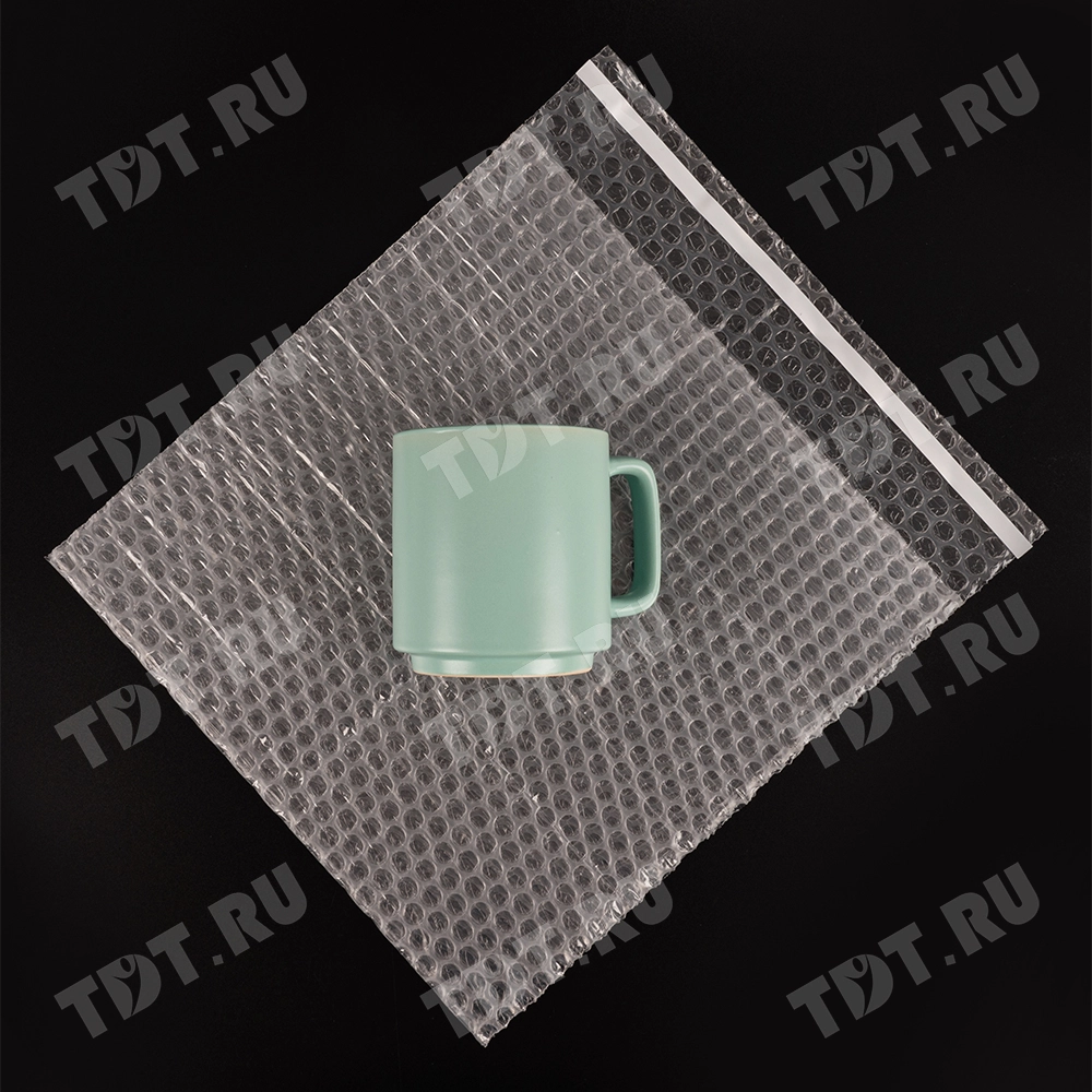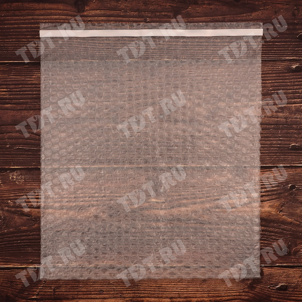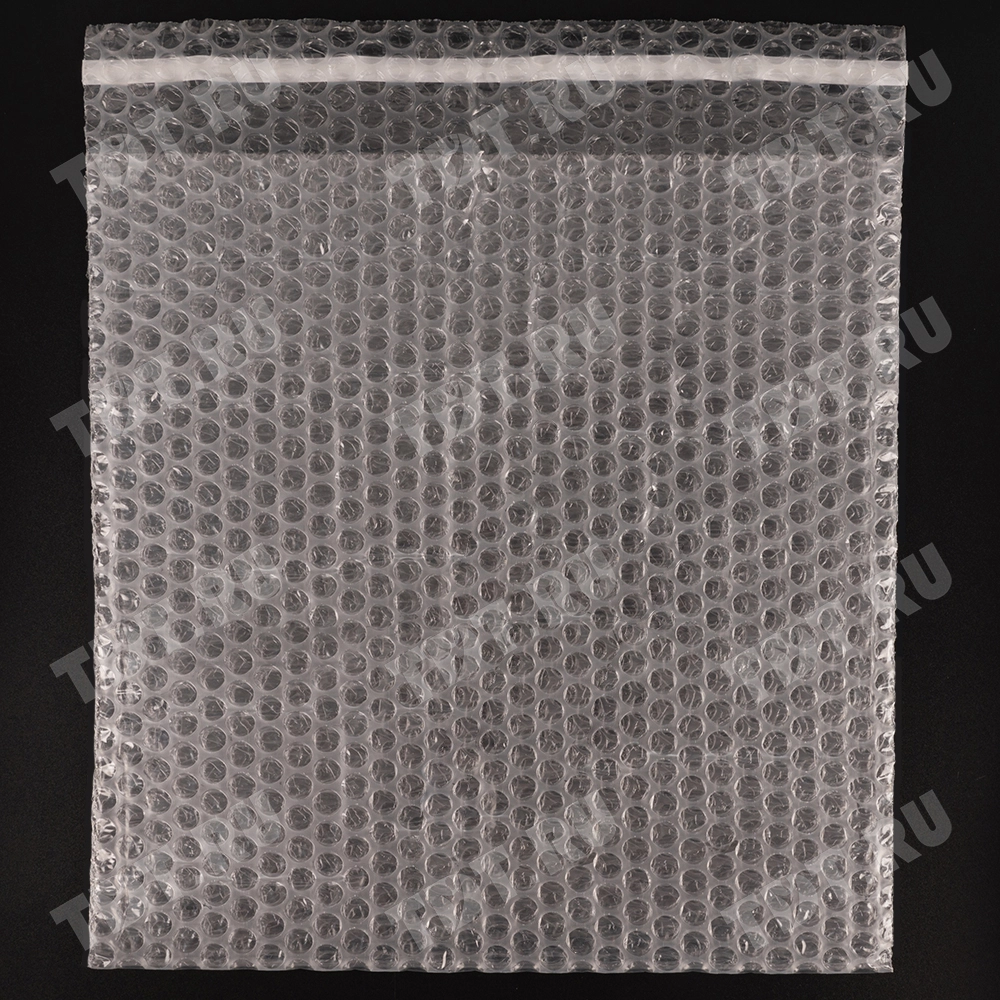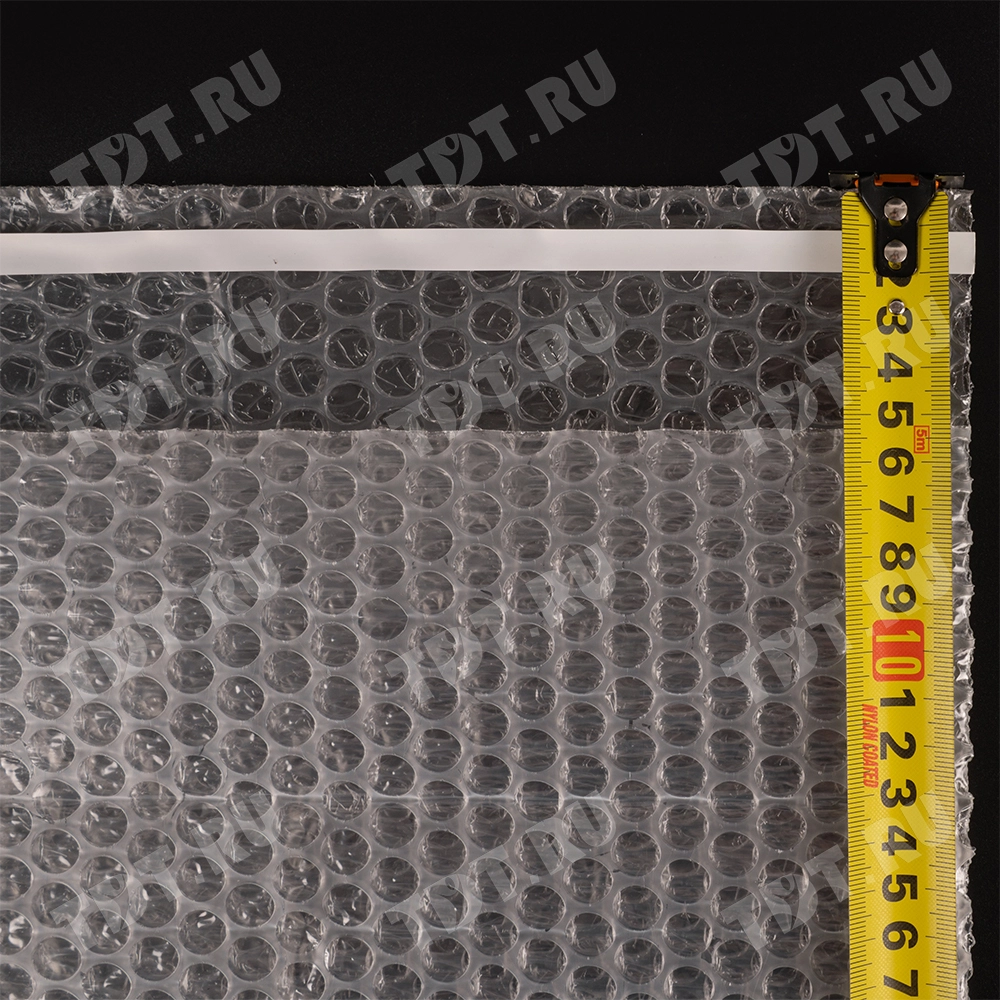 Прозрачный трехслойный воздушно-пузырчатый пакет длиной 10 см, шириной 15 см, с клеевым клапаном 5 см, диаметром пузырька 10 мм, плотностью 60 г/м². Изготовлен из полиэтилена. Производится в России компанией Бета-Куверт.