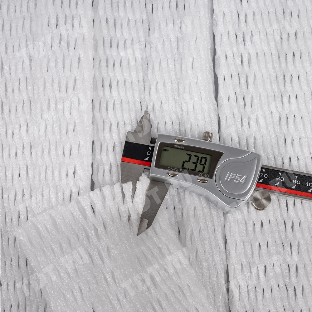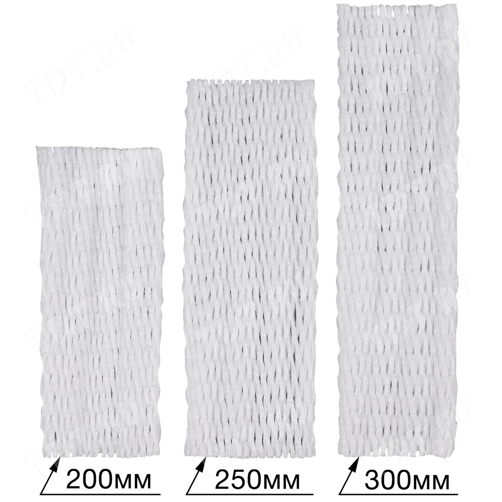 Упаковочная защитная сетка для бутылок, белого цвета, длиной 300 мм. Материал – вспененный полиэтилен. Производится в России.