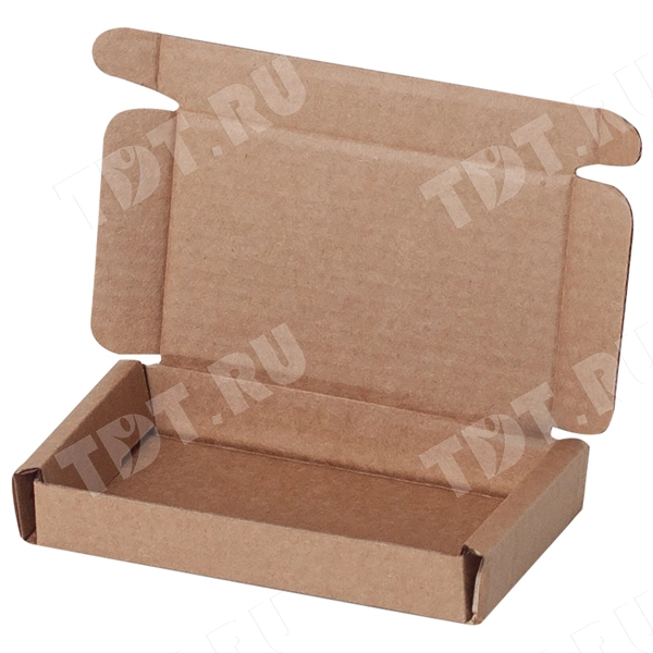 Короб КС-245 бурого цвета, длиной 150 мм, шириной 90 мм и высотой 25 мм. Изготовлен из трёхслойного гофрокартона Т-23 В. Полезный объём — 0.3 л.